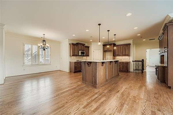 Stunning Roswell gated estate situated over 3 private acres, ideally located just minutes from Roswell's top tier shopping, schools, dining, and parks. This one-of-a-kind property offers unmatched privacy and flexibility--perfect for extended guests or multigenerational living. The main level showcases a chef's kitchen equipped with a Sub-Zero refrigerator, Thermador appliances, a generous bar, and an inviting eat-in area. The kitchen flows seamlessly into a gorgeous keeping room framed by a stacked-stone fireplace. Additional main-floor highlights include a spacious family room, an elegantly appointed dining room, and a richly paneled executive-style library/office complete with built-in shelving and a wet bar with refrigerator. The primary suite and an additional bedroom are also conveniently located on the main level. The terrace level offers exceptional living and entertainment space, including a theatre room, exercise room, two bedrooms, a full bath, bar area, and flexible-use space. These spaces feature their own exterior entries, ideal for guests or private living quarters. A standout feature of this estate is the large apartment situated above the 2-stall gentleman's barn. This charming living space includes a well-appointed kitchen, bedroom, bathroom, and spacious keeping room--perfect for caretakers, guests, or independent living. The fenced, level pasture provides easy access to the barn via horseback or vehicle. Car enthusiasts and hobbyists will appreciate the seven large enclosed garages, offering abundant multi-use space for workshops, equipment, hobbies, or an extensive car collection. Outside, the resort-like grounds are enhanced by extensive landscape lighting and include a lighted sports court, a spectacular covered outdoor kitchen pavilion featuring its own stacked-stone fireplace, a Primo ceramic grill, multiple stoves, warming drawer, grill, ice maker, and even a dishwasher. The pavilion overlooks the saltwater pool and Jacuzzi, and is complemented by a pool house complete with a full bath and storage area. A rare Roswell estate offering luxury, privacy, versatility, and unparalleled amenities--truly a retreat of its own.