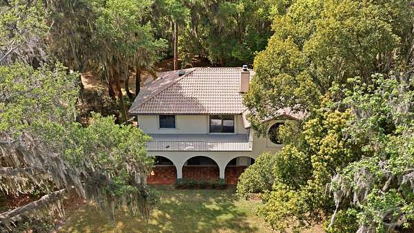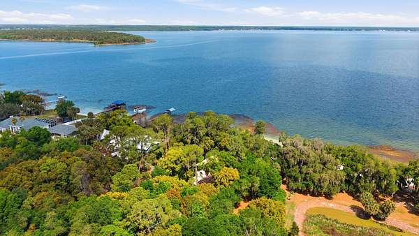 Listed significantly under appraised value! This exceptional custom-built 11 acre estate on the shores of Lake Weir represents a rare marriage of family legacy and forward-thinking engineering with private gated access. As a one-owner home, it was designed with a meticulous eye for detail, ultimately earning the 1993 Grand Aurora Award for energy efficiency. The residence is powered by a sophisticated geothermal AC unit and supported by a full-property generator, ensuring that modern luxury and environmental stewardship go hand-in-hand. Inside, the thoughtful layout features 4 spacious bedrooms and 4 bathrooms, complemented by two expansive bonus areas-one on each level-offering endless possibilities for a home cinema, gym, or creative studio. Every room is oriented to celebrate the location, providing breathtaking, unobstructed views of the water that make this high-performance masterpiece a true lakeside sanctuary with 240' beach front. You are just a two-minute drive from the nostalgic shores of Eaton's Beach, where you can spend your afternoons enjoying sandy lakefront views, live music, and that quintessential "Old Florida" atmosphere. When you're ready for a change of pace, a quick 10-minute trip brings you straight into the heart of The Villages, providing effortless access to world-class dining, nightly entertainment in the town squares, and endless shopping.
