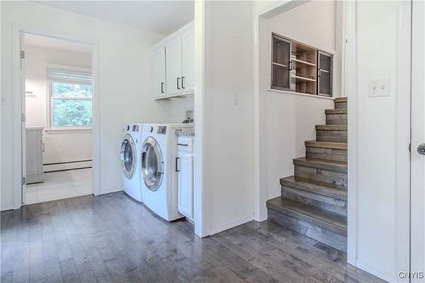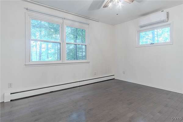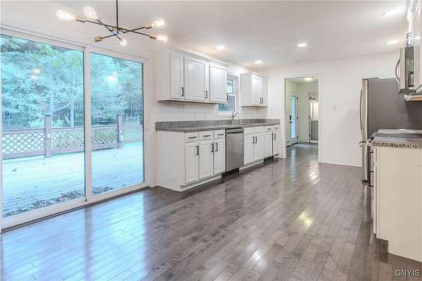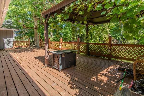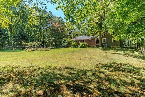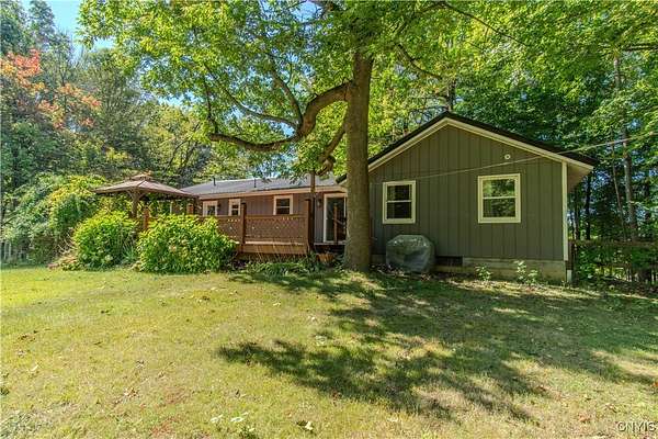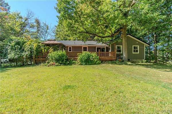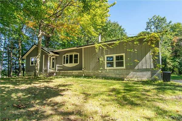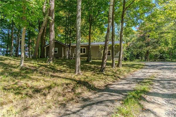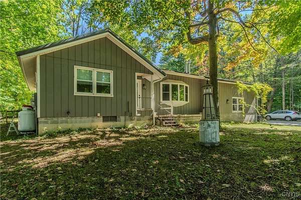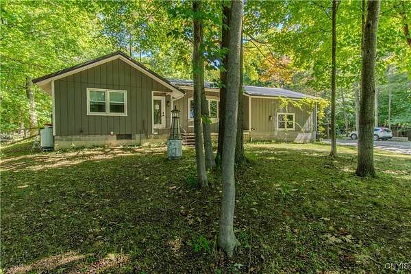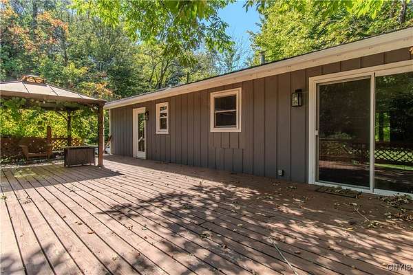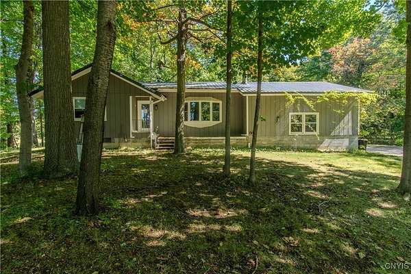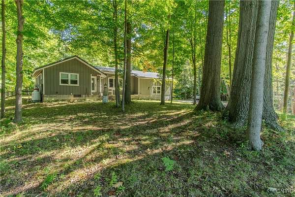 Built in 1975, this well-maintained ranch-style home blends comfort with modern updates. A metal roof installed in 2020 tops the residence, and newer windows offer efficiency and natural light. Enjoy a large back deck overlooking the tree-lined acreage-ideal for outdoor dining or quiet mornings. Inside, you'll find hardwood floors throughout, three bedrooms, and two full baths. Two bedrooms and baths are located on the main level, while a third bedroom is upstairs. The kitchen was fully refreshed with granite countertops, a new dishwasher, refrigerator, electric stove, and microwave. Ample counter space with plenty of cabinet space. A sliding glass door provides easy deck access and great views of the 3.5 park like acres. Key mechanicals include central air with mini splits, a 2019 boiler, seamless gutters, public water plus a supplemental well, a septic system, and propane service. The home also features a full basement with sump pump, and a two-stall attached garage. The washer and dryer stay for added convenience. Set in a park-like setting near Westcott Beach State Park, this property offers both privacy and proximity to outdoor recreation and nearby amenities.