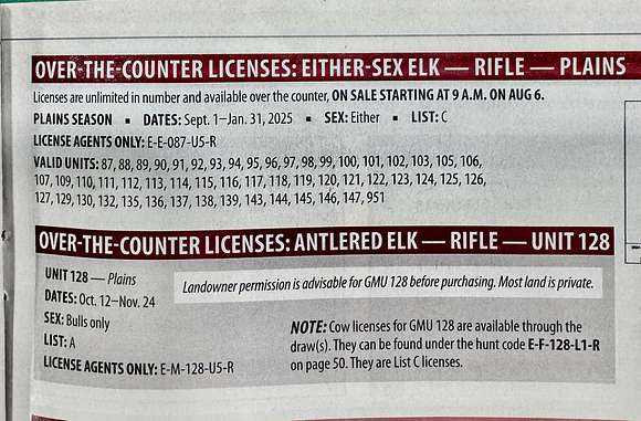 Tobe Mesa Ranch lies in the core of Colorado's Plains Elk Units, the most liberal elk tags in existence with unlimited over the counter tags. Elk Season is September 1st - January 31st, offering 5 full months of unlimited elk hunting, unlimited tags per hunter, either sex, weapon of choice and no antler restrictions.