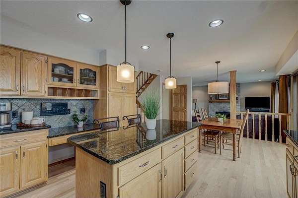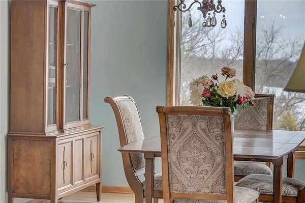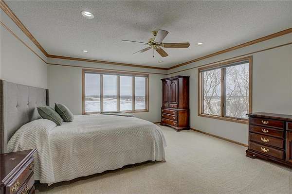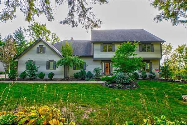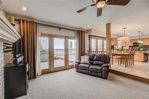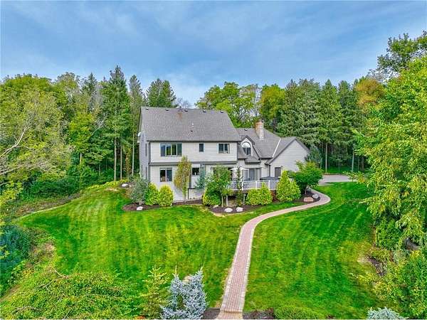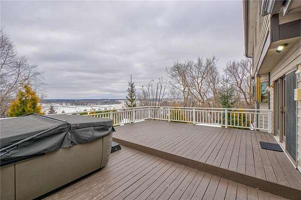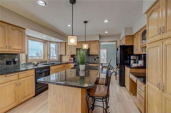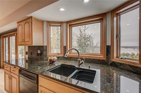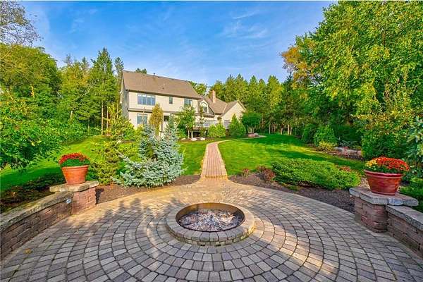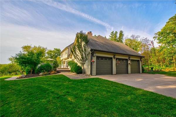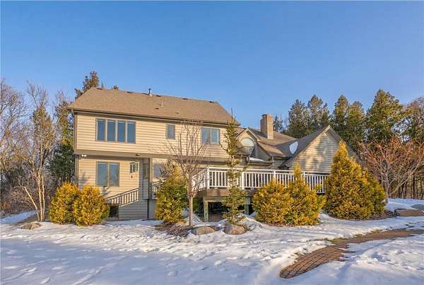 Enjoy country living at its finest with breathtaking hilltop views and sweeping vistas that stretch for miles. Anchored by towering pine trees, stunning landscaping, and a paver firepit, this property is a private sanctuary you'll love coming home to. Relax in the newer hot tub on the deck while overlooking the peaceful backyard, and take advantage of exceptional storage and functionality with a rare six-stall garage setup: a three-stall attached garage plus a heated three-stall detached garage with additional storage above--perfect for vehicles, equipment, and hobbies. The traditional two-story floor plan offers timeless appeal and functional living, featuring an open great room, formal dining room, and front living room--ideal for both everyday life and entertaining. The kitchen showcases granite countertops, while newer hardwood floors flow seamlessly through the kitchen and dining areas. A cozy family room centered around a wood-burning fireplace adds warmth and character. All bathrooms have been thoughtfully updated with stone countertops and upgraded fixtures. Step out to the spacious deck off the informal dining area to enjoy incredible backyard views. Upstairs, four spacious bedrooms include an expansive private suite with two closets and a private bath, creating the perfect retreat. The fully finished lower level is designed for entertaining and versatility, featuring a family room with wet bar, a fifth bedroom, and a large recreation space ideal for fitness, crafts, or other flexible uses. Located within the highly regarded School District 833, this exceptional property offers a rare combination of privacy, space, scenic beauty, and everyday convenience.