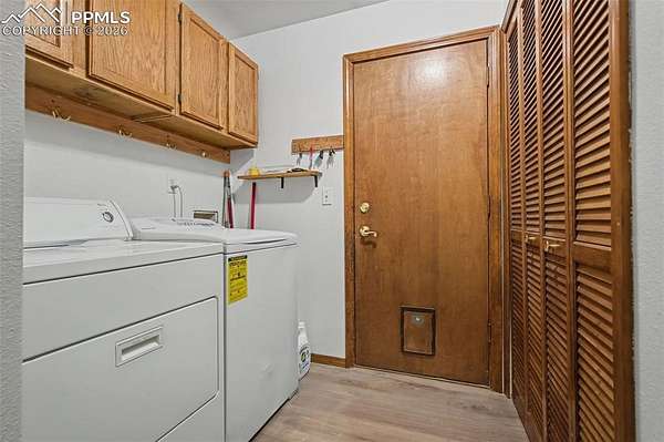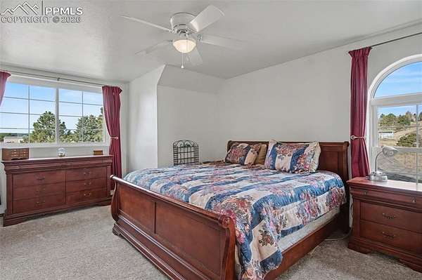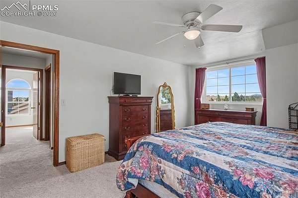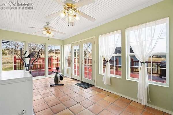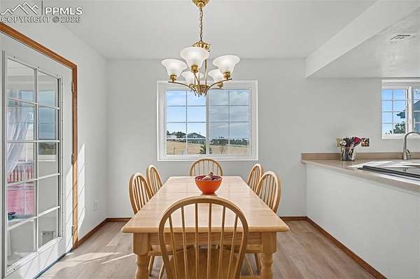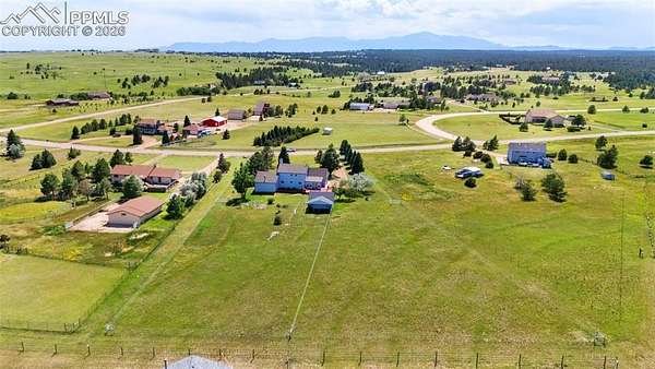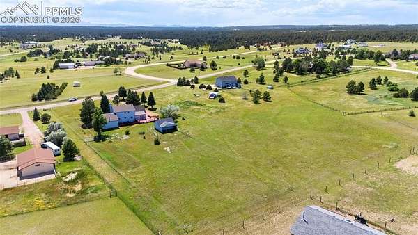 Situated in the desirable Latigo neighborhood, this property captures the essence of Colorado living with a beautiful, level lot, mature pine trees & stunning views of Pikes Peak & the Front Range. The setting offers a rare blend of privacy, usability & wide-open space, perfect for enjoying quiet mornings, sunsets & everyday life outdoors. Designed with both relaxation & functionality in mind, the exterior features a covered front porch & an expansive back deck, ideal for taking in the views or entertaining. The land is fully set up for animals with a fenced front yard, two separate pastures & a 24x20 shed/workshop with attached loafing shed, ideal for hay storage, equipment or hobbies. Inside, the home offers a comfortable floor plan with multiple living spaces. A spacious family room addition is filled with natural light from large windows, with built-in shelving, a cozy fireplace & direct access to the backyard. New carpet extends through the living room, family room & bedrooms, adding a fresh, comfortable feel throughout these spaces. The kitchen & dining areas have been refreshed with luxury vinyl plank flooring, stainless steel appliances & updated interior paint. The kitchen also includes an eat-in area, flowing into a large sunroom with walk-out access to the deck, offering a versatile space for a sitting room, playroom, or home office. Upstairs, you'll find three well-sized bedrooms & two full bathrooms, including a primary suite with attached bathroom & walk-in closet. The fully finished basement provides additional flexibility with large rec room, non-conforming bedroom, a third bathroom & a second laundry hook-up. Located within District 49 & offering convenient access to Meridian Road & Highway 24, this property combines a peaceful, rural feel with everyday accessibility. Residents also enjoy access to the Latigo Equestrian Center & neighborhood riding easements, making it an ideal fit for those seeking space, views & a more relaxed Colorado lifestyle.
