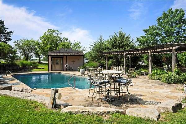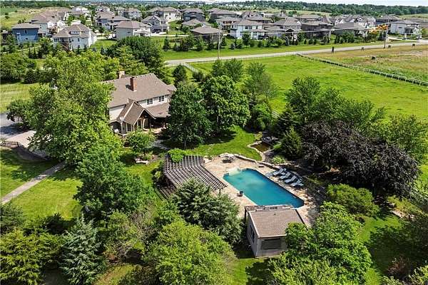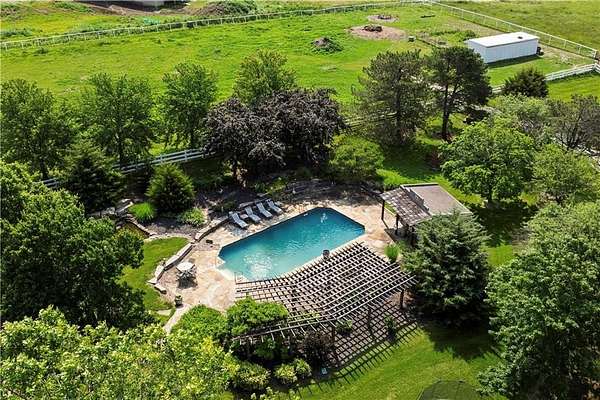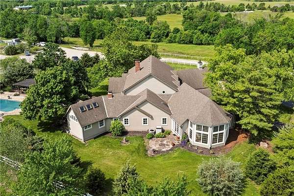 Luxury Estate on 10 Park-Like Acres in Prestigious Blue Valley School District. Welcome to your private retreat--where refined living meets rural tranquility. This expansive 5-bedroom, 4 and 1/2 bathroom estate offers over 7200 square feet of beautifully finished living space, including a full basement ideal for recreation, entertainment, or multi generational living.