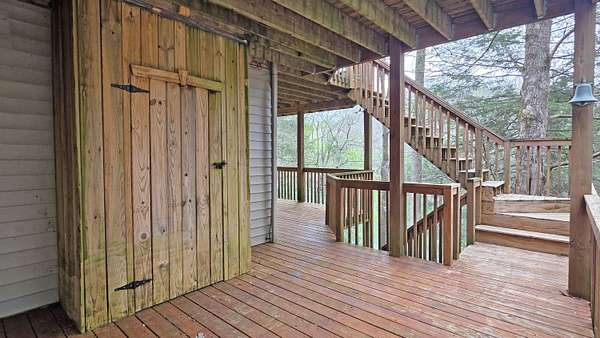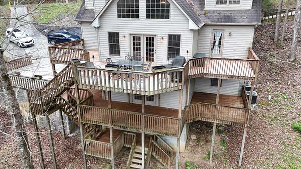 Located on Wood Creek Lake in Woodcreek Valley Subdivision, this beautiful lake property is approximately 3 miles from I75 exit # 41. The house sits on 2 lots, is 1 1/2 story, 4 BR, 3 1/2 Bath with decks on both levels, and has walk out from finished basement. It has a large living room on 1st floor and family room/ den area in basement - both with propane gas fireplaces. It has appliances plus washer / dryer included and all furniture, decor, and items shown in pictures are included with the sale. It comes with a floating dock (16.8' x 31.4'), has steps down to water and (< 100')and close to boat ramp. The house is close to dead end of Lake Rd for more privacy ( only 2 more houses at end of road) Perfect for relaxation and wonderful view of water. If you love lake life, you must check this one out.
