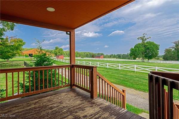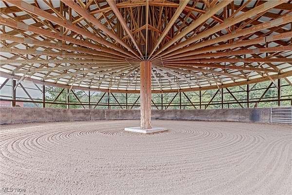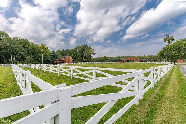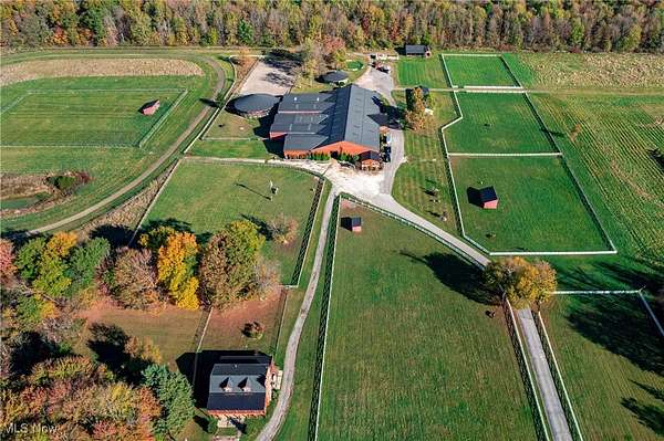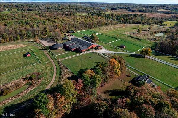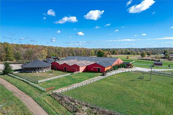 Welcome to JSR Equine Center, a premier 58-acre equestrian estate in Chardon, Ohio, reimagined with over $1M in recent upgrades. Enter through a new $36,000 industrial gate and freshly paved drive to discover 10 fenced paddocks (eight with automatic water), five ponds, and world-class facilities including two indoor round pens, an outdoor round pen, a full outdoor racetrack, a six-horse round pen, a four-horse jogging machine, and multiple run-in sheds with automatic water. The main barn has been extensively updated with new roofing, commercial-grade garage doors, a gas heating system, new plumbing and electrical, new feed and storage rooms, a cedar-lined facade with covered porch, and a rebuilt office with cedar siding, stone wall, new roof, windows, and HVAC. Additional equestrian features include a $50,000 wash rack with cement floor, rubber mats, and industrial washer/dryer, upgraded footing in arenas, new water systems, and a surveillance and monitoring system covering barns, stalls, pastures, and residences. Infrastructure improvements include two new natural gas generators, three independent gas lines for the house, barn, and apartments, and fully addressed drainage across farm and pastures. The residences include a fully rebuilt 3-bedroom, 2-bathroom main house with hardwood floors, cedar decks, two river-stone fireplaces, new appliances, and a finished basement, plus two completely renovated apartments ideal for staff housing or short-term rentals. Extensive landscaping includes $250,000 in fencing, removal of 80-100 trees with stump grinding, new trees, boulders, dog fencing, multiple garages and sheds. Every element has been refined, creating a turnkey destination for training, boarding, breeding, or private equestrian enjoyment.