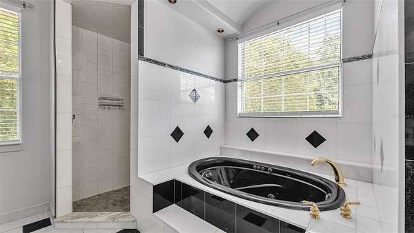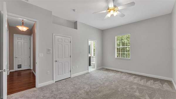 - Ceiling Fans(s), Coffered Ceiling(s), Crown Molding, Eat-In Kitchen, High Ceilings, Primary Bedroom Main Floor, Stone Counters, Thermostat, Vaulted Ceiling(s), Walk-In Closet(s)