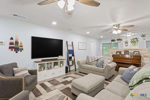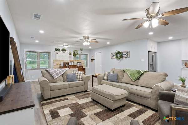 Nestled in the countryside between Fort Hood and Belton, your new home provides space and nature without sacrificing convenience and accessibility. The space boasts a spacious, fully renovated 3000 square feet, complete with modern, open-concept kitchen and granite countertops, sun room with office space, 3 bedrooms each with full ensuite bathrooms, and gorgeously updated laundry room with mud sink. In this truly one-of-a-kind custom build, you'll also find an additional sparkling canning kitchen with food-grade butcher block countertops, spiral staircase and bonus room upstairs, lovingly referred to as the "Treehouse" complete with 360 degree views of the treetops surrounding the property. The house sits on a hill overlooking a forested backyard where birds nest and deer are often seen grazing with their fawns. A large quonset-style shop provides ample space for outdoor recreation storage and woodworking hobbies and private Nolan Creek access is a welcome retreat from the Texas summer heat. Property also is equipped with full RV hook-ups, making this a welcoming place for out of town friends and family.