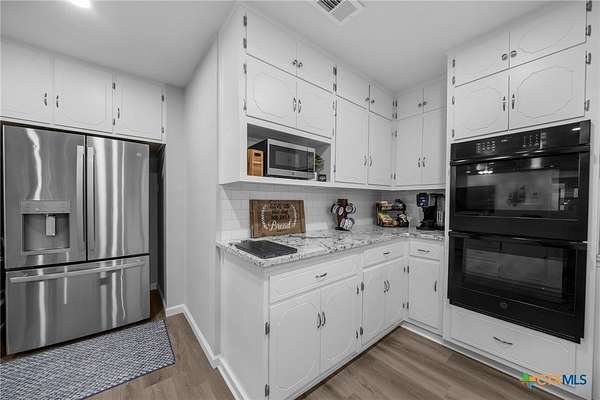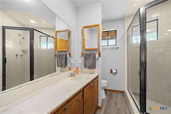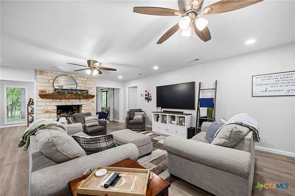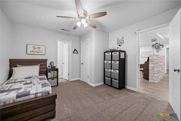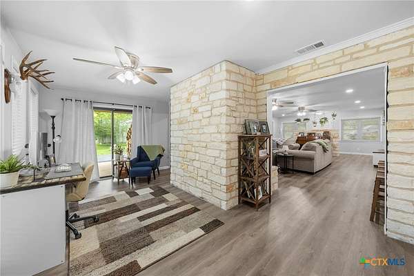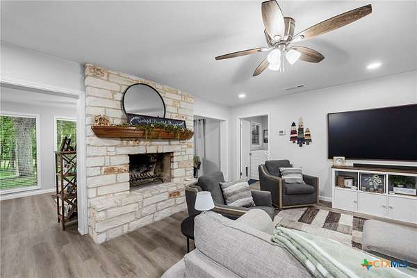 Step into a one-of-a-kind Texas property where history, character, and modern upgrades come together on a beautifully manicured, wildlife-rich setting along Nolan Creek. This home, also known as the first "round house" in Belton which was featured in the local newspaper. This architecturally unique residence has been recently remodeled while preserving its charm-making it a true standout in the Central Texas market. Priced at $750,000 but recently appraised at $811,000 =Instant equity opportunity for savvy buyers. Some of the property highlights include; all 3 Bedrooms are on the main floor and all have en-suite bathrooms making this perfect for multi-generational living space, short-term rental, or guest privacy. The addition of the 2 story "round house" has tall ceilings, a full bathroom, 360 degrees scenic tree top views as well as a wrap-around upper balcony. Wildlife enthusiasts, just image sitting out there sipping your morning coffee, listening to the birds chirp, see deer grazing and having the sounds of the creek in the background. One of the truly custom features of this home includes a walk-through butler's pantry which is perfect as a canning room, prep kitchen, or second kitchen setup. It also has easy access to the garage, which is fully outfitted with a ton of storage. Recently remodeled (2024/2025) interior blends modern updates with keeping historic character. Other features include a new well house a new aerobic septic system, 2 new hot water heaters, all new appliances. Outdoor Structure is a 1,500+ sq ft barn/workshop that can be used as extra storage, event space, hobby barn, workshop or home-based business. Have your favorite agent ask about buyer incentives with use of preferred lender.