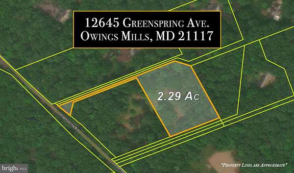 This beautiful property includes 2 building sites: 12643 Greenspring Ave (2.78 Acres) and 12645 Greenspring Ave (2.29 Acres). Both lots are flat, surrounded by mature trees, and have a cleared area. Very private, and also convenient location. 12643 Greenspring has an existing structure that is in tear down condition. 12643 has an existing well, existing septic system, and an approved perc for a new build . 12645 Greenspring has an existing well, and approved perc for a new build. Please verify with Baltimore county what building approvals will need to be updated, and any intended uses of the property. 12643 can be purchased separately for $550k. 12645 can be purchased separately for $500,000. Please do not go to the property without an appointment. Do not enter the existing home.