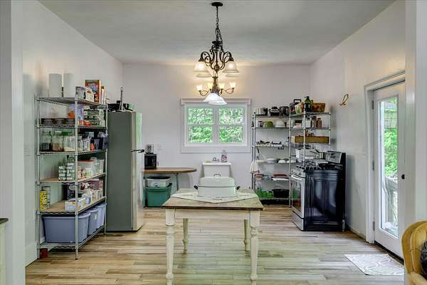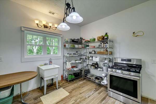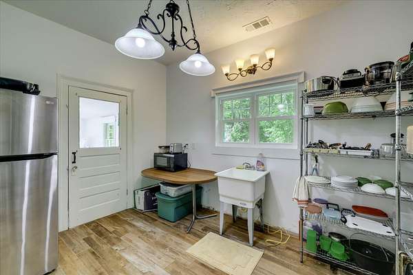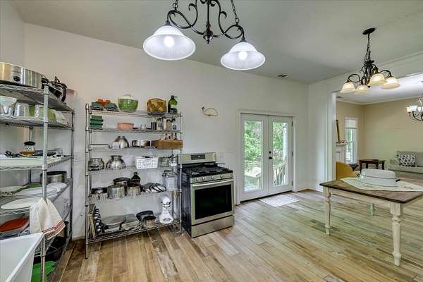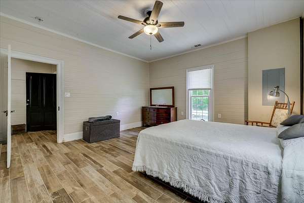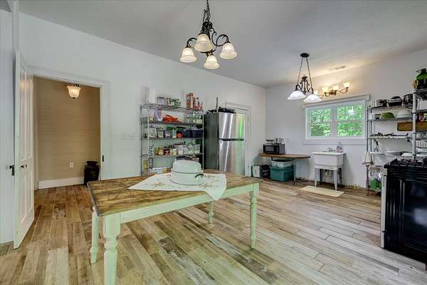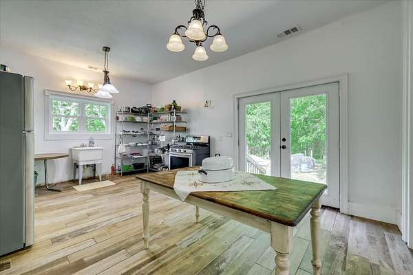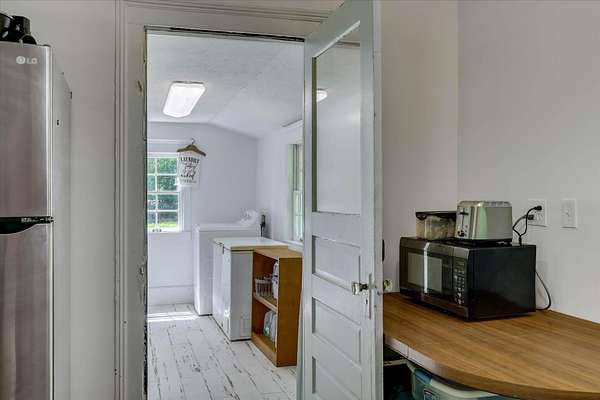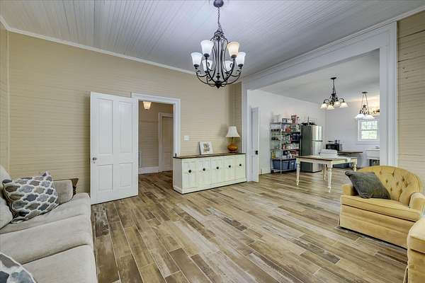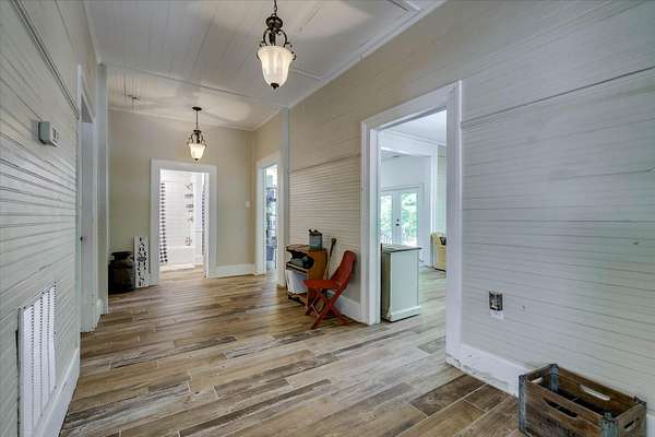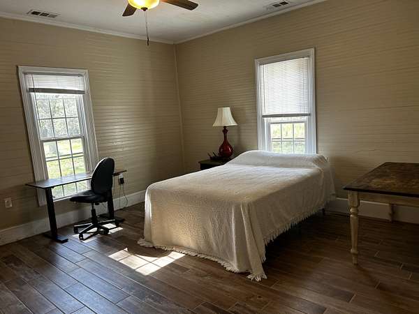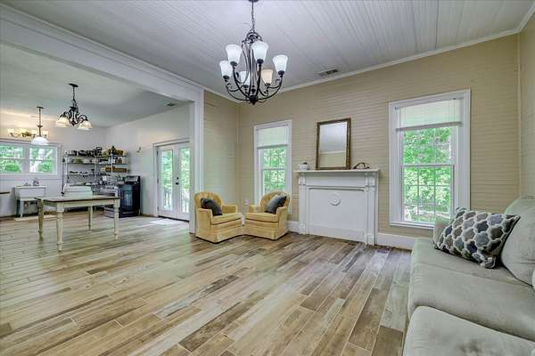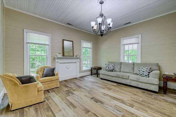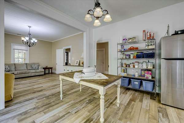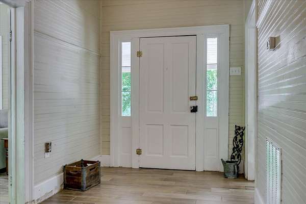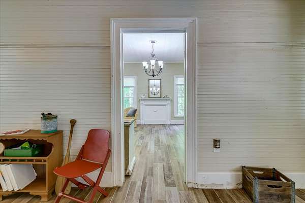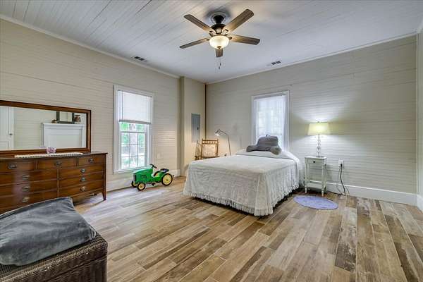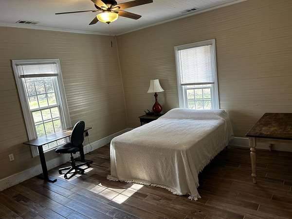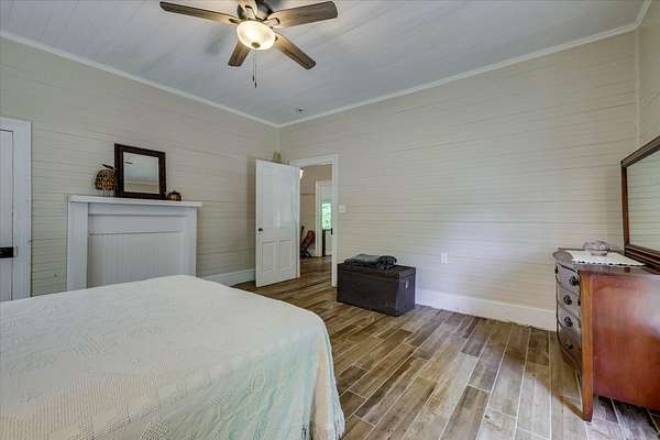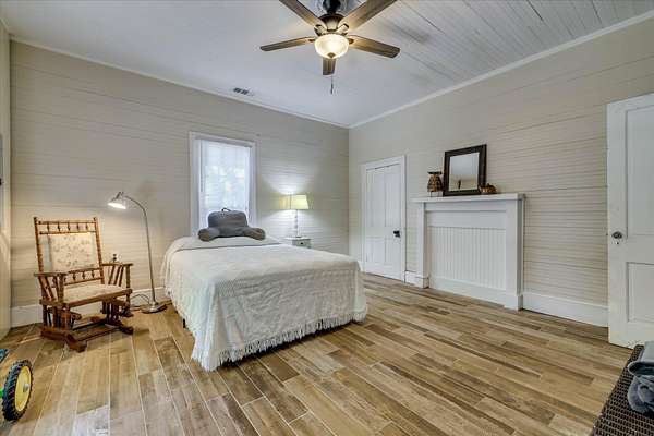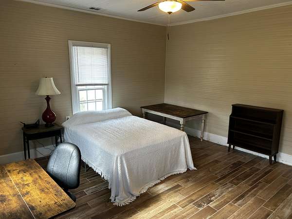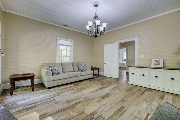 Charming and full of character, this 2-bedroom, 1-bath home is ideally located just approximately 1.7 miles from the boat ramp at Gills Point Recreation Area--perfect for those who enjoy easy access to the water and outdoor recreation. Step onto the inviting covered front porch and into a spacious entrance foyer that sets the tone with high ceilings and timeless appeal. To the left, you'll find two comfortable bedrooms, while the bathroom--featuring a tile shower/tub combo--is conveniently situated at the end of the hall. To the right of the foyer, the home opens into a bright and airy great room, seamlessly flowing into the dining area and kitchen for a true open-concept layout. The kitchen is equipped with a gas stainless steel stove, making it both functional and stylish for everyday living and entertaining. Adding to the home's charm is the original beadboard detailing found throughout most of the house, offering warmth and classic Southern character. A covered back porch houses the laundry area, providing practicality while maintaining the home's cohesive layout. Whether you're looking for a weekend retreat near the lake or a cozy full-time residence, this property offers the perfect blend of charm, comfort, and convenience.