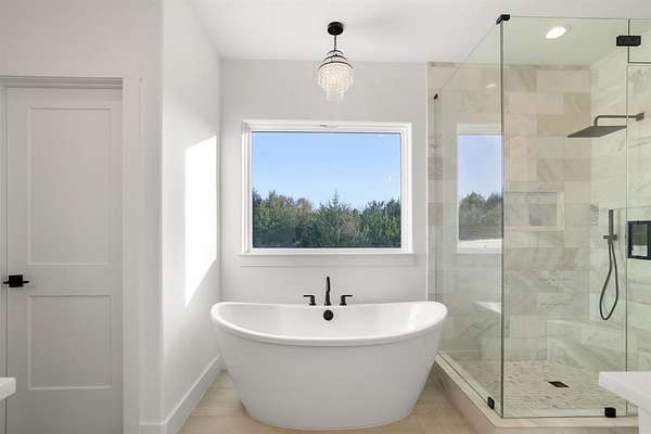 The kitchen is made for entertaining with stainless steel appliances, custom cabinetry, a large island, and a hidden walk-in pantry that adds both charm and incredible storage. The primary suite feels like a spa getaway with a standalone soaking tub, custom tile shower, and oversized closet. Outside, enjoy the large, covered patio--perfect for grilling, relaxing, or creating your dream firepit setup for cozy nights under the stars.