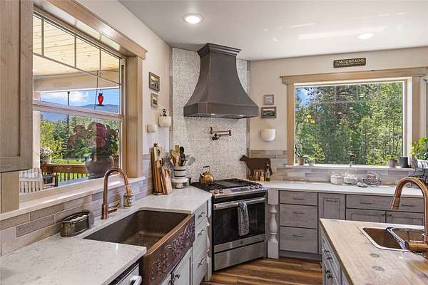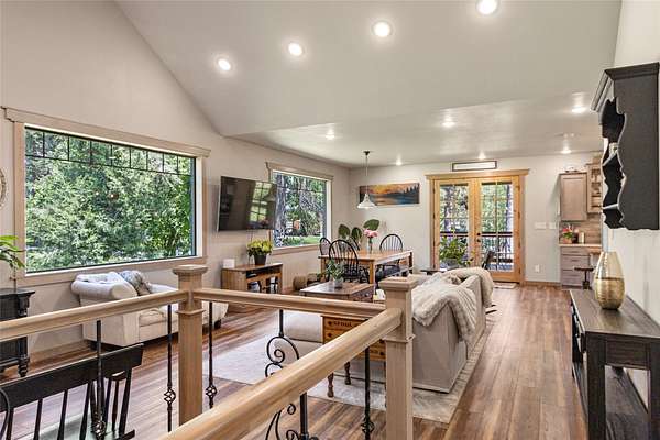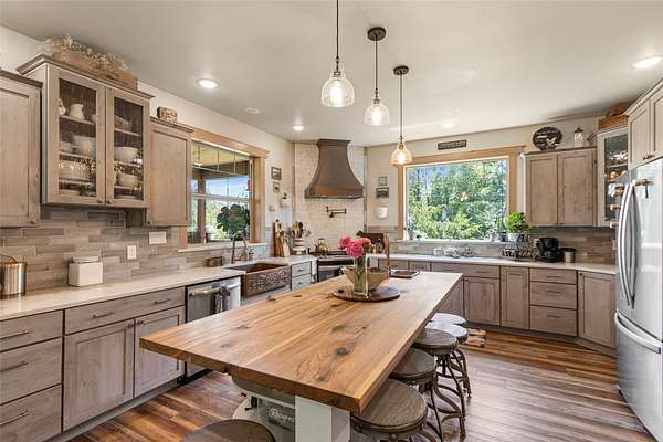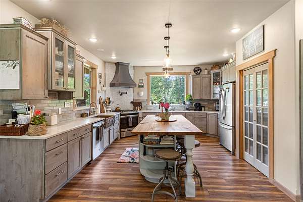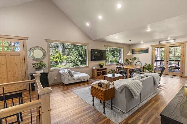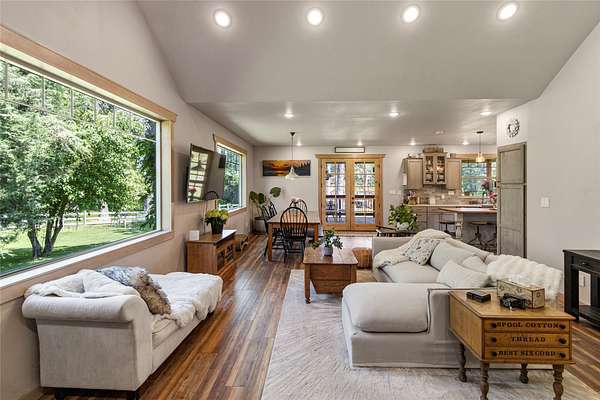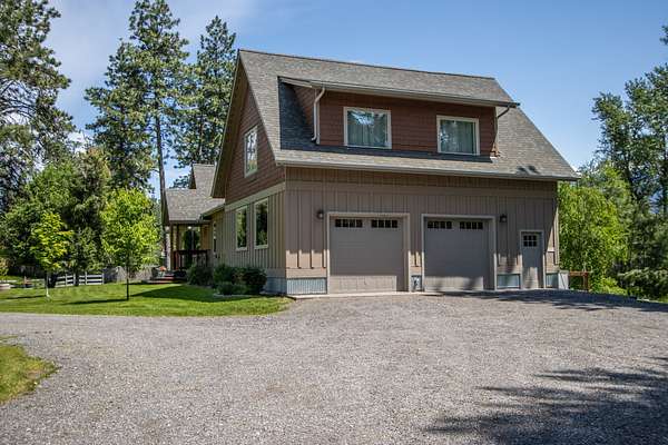 MONTANA RIVERFRONT LUXURY WITH INCOME POTENTIAL ON 8+ ACRES A rare opportunity to own over 8 acres along the Flathead River, with 256 feet of river frontage that reaches out to a scenic island-an extraordinary Montana escape. The main residence features soaring vaulted ceilings, rich custom woodwork, and a bright, open-concept design that flows seamlessly to multiple decks and patios. Enjoy effortless indoor-outdoor living with breathtaking views in every direction. A separate guest house with private entrance offers elegant accommodations and operates as a high-performing short-term rental. The walkout lower level is plumbed and wired-perfect for a bar, second kitchen, or expansive entertaining area. A legacy property combining natural beauty, privacy, and income potential.