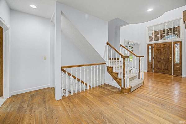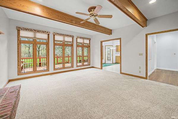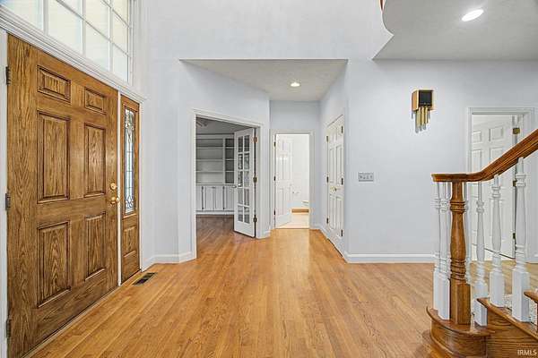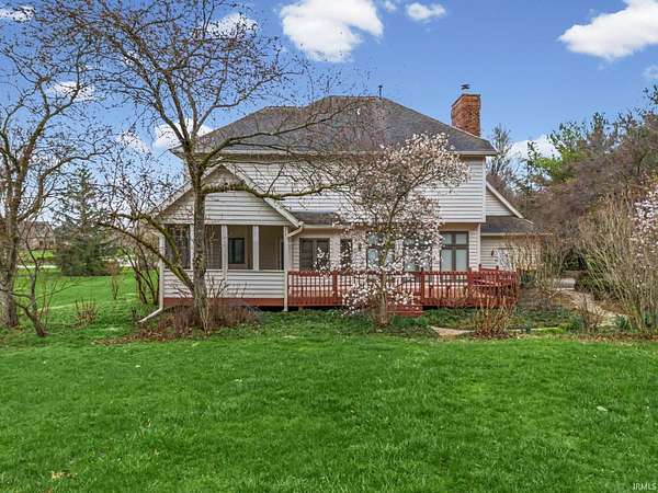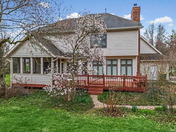 Stunning two-story home with a finished daylight basement situated on 1.51 beautifully landscaped acres, filled with mature trees and flowering accents on a desirable corner lot. Offering over 4,000 square feet, this traditional home blends elegance, comfort, and functionality. Step into the impressive two-story foyer that sets the tone for the home’s spacious design. The expansive family room features a striking beamed ceiling and cozy fireplace—perfect for gathering and entertaining. A dedicated den/office includes a full wall of built-in shelving and storage, ideal for working from home. An open staircase to the finished basement is thoughtfully positioned within the home (not visible from the entry), preserving a clean and refined first impression. The kitchen flows seamlessly to a large screened-in porch and expansive deck, both overlooking the gorgeous backyard and accessible from the kitchen and family room—perfect for indoor-outdoor living. The home also features a generously sized laundry room with 11 feet of built-in counter space for added convenience. Upstairs, the luxurious primary suite is a true retreat, featuring a grand tray ceiling, double-door entry, and a spa-like bathroom with jetted tub, separate shower, double vanities, and an enormous walk-in closet. A second ensuite bedroom offers its own private bath, while the third and fourth bedrooms share a well-appointed bathroom. The finished basement is an entertainer’s dream, complete with a theater room, game room, and a fourth full bathroom. An oversized three-car garage provides ample storage, and the home’s beautiful rural setting in a highly sought-after upscale area offers both privacy and convenience—located just minutes from Purdue, shopping, and schools. This exceptional property offers space, style, and a setting that’s hard to beat.