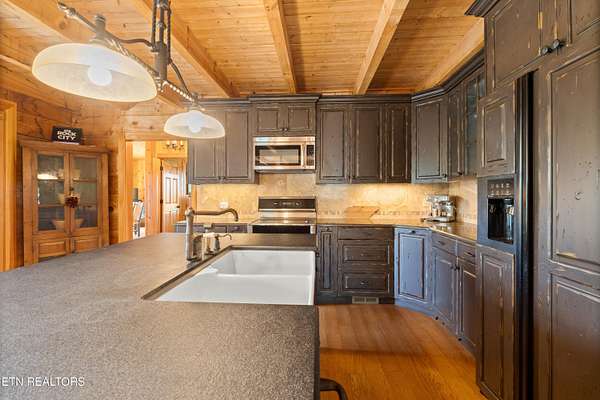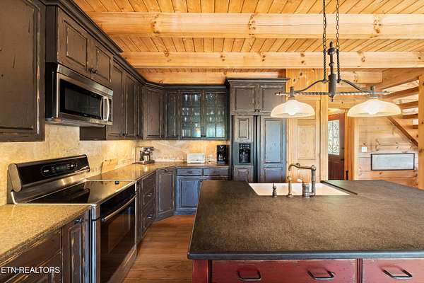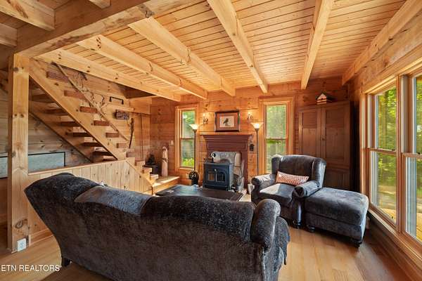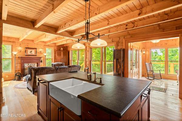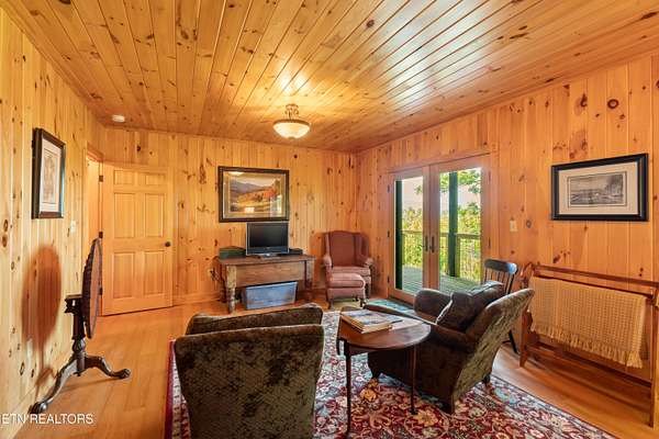 Perched atop 8.4 private acres, this exceptional mountain estate offers breathtaking 360 degrees views of the Smoky Mountains and over 5,000 square feet of total living space between the main residence and guest house. The main home boasts 4,400+ sq ft of beautifully designed living space. Step inside to find a spacious kitchen with a cozy keeping room-perfect for gatherings and everyday comfort. The oversized master suite is a true retreat, complete with a cedar-lined walk-in closet and a private, covered deck ideal for warm summer nights or peaceful mornings. Upstairs, you'll find three generously sized bedrooms, a charming library area, and a scenic observation room offering jaw-dropping mountain vistas-perfect for stargazing or enjoying the ever-changing landscape. The finished basement includes a large bonus room and a comfortable family room, offering even more space for entertaining or relaxing. The 600 sq ft guest house features an open-concept kitchen and living area, one bedroom, and plenty of natural light-ideal for visitors or use as an income-producing rental. Whether you're looking for a private mountain escape, a multigenerational property, or a scenic sanctuary, this one-of-a-kind estate offers it all. Unmatched privacy, stunning views, and room to breathe-this is mountain living at its finest.