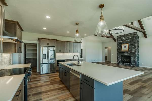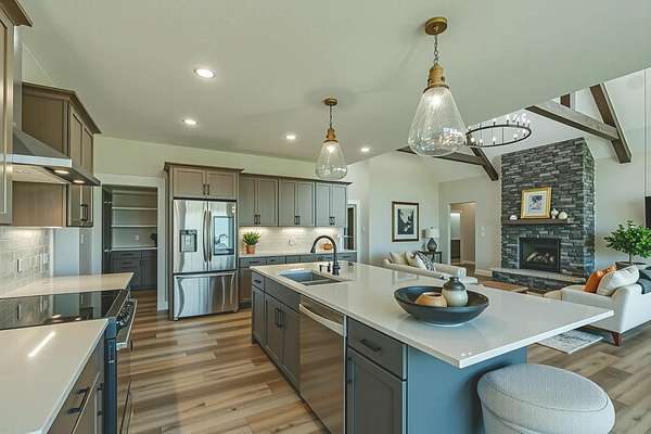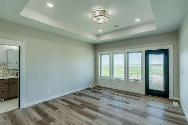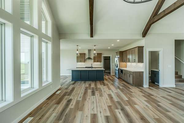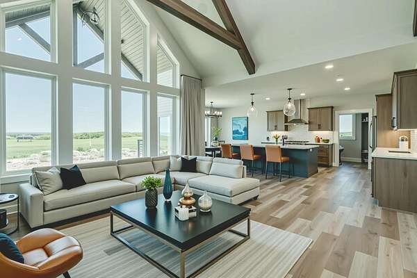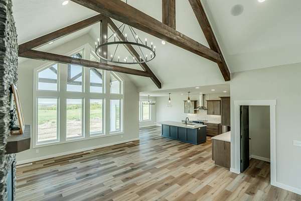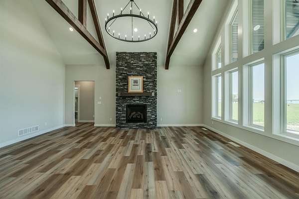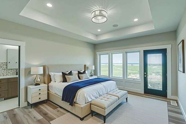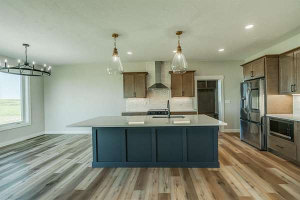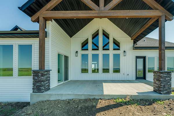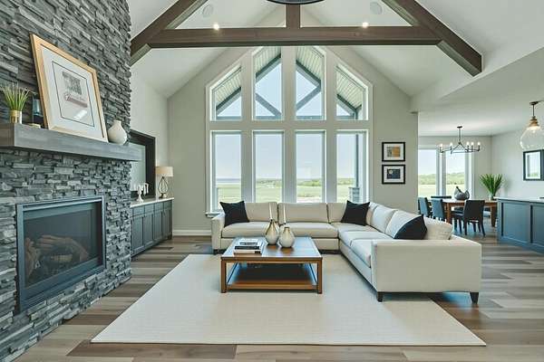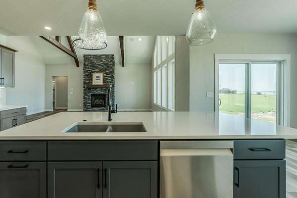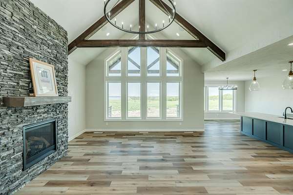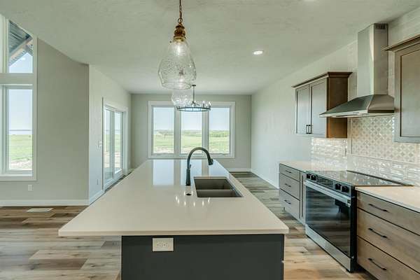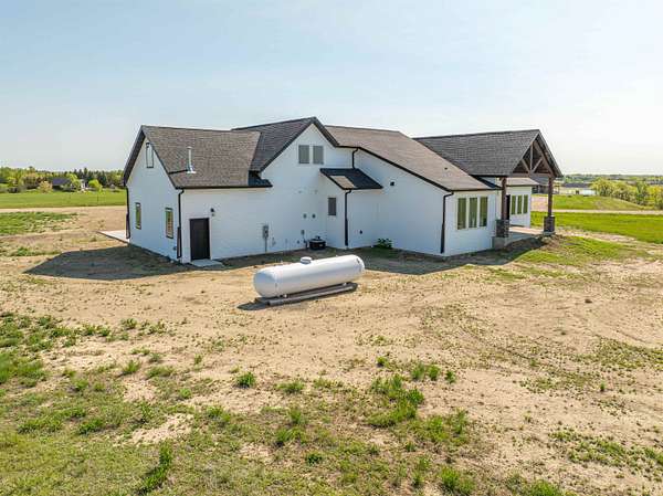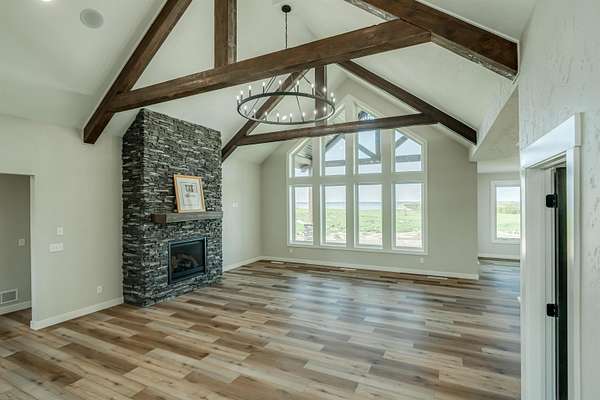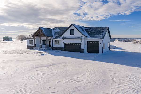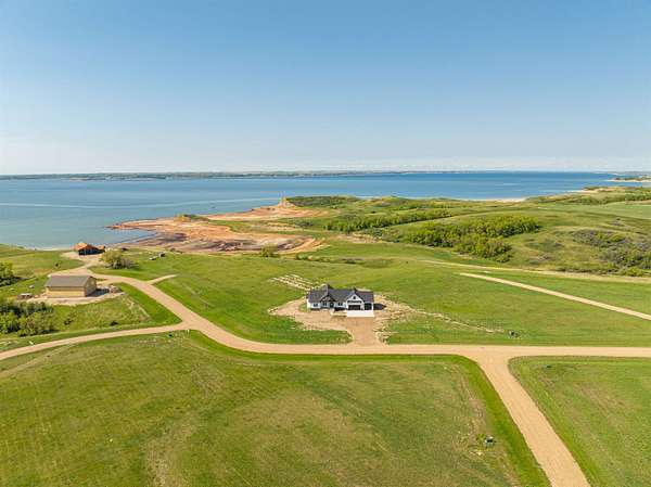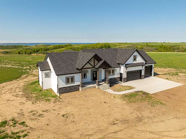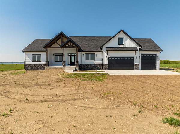 Stunning Custom Lakefront Home on Garrison Bay - Move-In Ready! Discover lakeside living at its finest with this brand-new, custom-built home overlooking beautiful Lake Sakakawea. Perfectly positioned on 2 acres backing to Corps of Engineers shoreline, this property offers uninterrupted lake views and direct walk-down access to the water--all just minutes from a public boat ramp and right across from Fort Stevenson State Park. Located just 4 miles from downtown Garrison, with convenient access to both Bismarck and Minot, this home offers an easy commute while embracing the tranquility of lake life. This patio style, 1 1/2 story home, has so much to offer!! The main floor features a spacious and open floor plan with a bright living room and cozy gas fireplace that has beautiful tile accent from floor to ceiling, plus there are and stunning wood beam timbers that accent the vaulted ceiling. The gourmet kitchen with a large island and classy pendants lights, includes custom cabinetry, quartz countertops and tile backsplash, plus there's an expansive walk-in pantry with built-in cabinets, countertops, and shelving. Also, on the main floor are three spacious bedrooms, including the large primary bedroom with walk-in closet and 3/4 primary bathroom that includes a tiled walk-in shower. There is also a full guest bathroom on this level also with custom tile surround, separate laundry area, plus an office right off the entry. The upper level includes a large family room and third bedroom. There is also plumbing available to add a bathroom or wet bar, if desired in the future. This home also boasts heated, oversized, three stall garage, with a 10'x10' third bay perfect for storing your boat. Plus, there are full RV hookups next to the garage! Other features include surround sound wiring throughout the home and patio. The 4' tall crawl space is temperature controlled and has a dust covering for easy storage. The Developer is actively working on plans to add a walking path to the shore and pursue dock permits for residents--an incredible potential bonus to this already exceptional property (buyer should verify with developer on the status). * Some pictures are virtually staged. * Don't miss your opportunity to make this luxurious Lake Sakakawea home yours, today!!