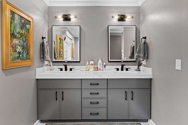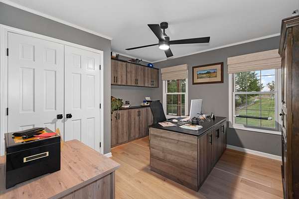 Welcome to this stunning 3,120 sq. ft. country home that perfectly blends peaceful rural living with modern luxury. Situated on a picturesque property, it features a beautiful aerated pond with a fishing dock right in front of the home -- a view you can enjoy daily from the primary suite or enjoying it from your covered front porch. The main floor has been completely renovated with exquisite details, including quartzite countertops, a GE Cafe gas range, and a marble bathroom with heated floors in the room and shower. Enjoy endless hot water with the tankless water heater and peace of mind with the 26KW Generac whole-house generator.