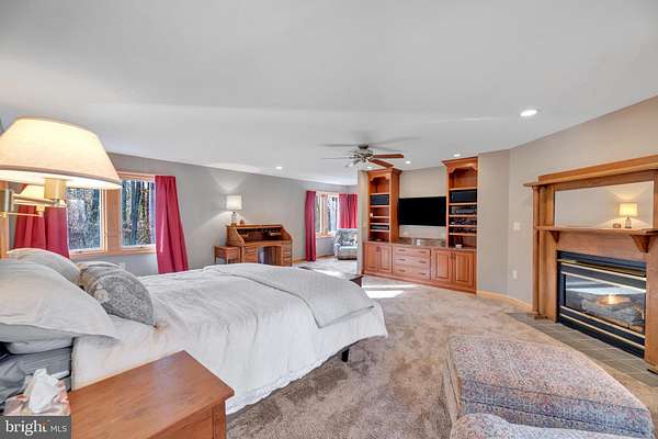 - Carpet, Ceiling Fan(s), Family Room Off Kitchen, Formal/Separate Dining Room, Gourmet Kitchen, Open Floor Plan, Pellet Stove, Primary Bath(s), Recessed Lighting, Soaking Tub Bathroom, Stall Shower Bathroom, Table Space Kitchen, Tub Shower Bathroom, Upgraded Countertops, Walk-In Closet(s), Walk-In Shower Bathroom, Window Treatments, Wood Floors