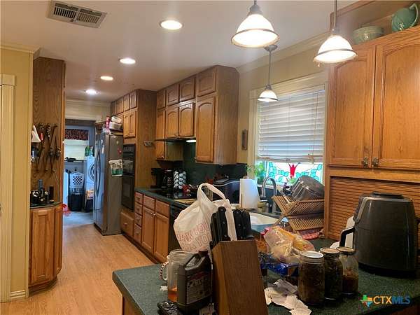 Nice three bedroom/two bath/two car garage country home with 8+ acres, stock ponds, beautiful mature oak trees. Quite country setting near major cities. Room for cattle, chickens, goats, pigs and much more. Large workshop/storage detached building or turn into a guest home, many possibilities. High fencing and several entry and exit gates to section off livestock. It would not take much to turn this into a private relaxing retreat to call home. Hope y'all can make it out to visit soon.