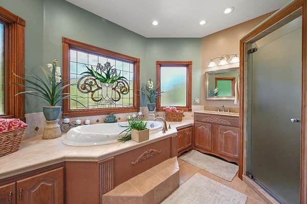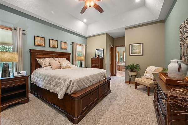 - 9 Ft + Ceiling, Beam Ceiling, Built-Ins, Crown Molding, Heated Floors, Multi Panel Doors, Natural Woodwork, Program Thermostat, Trey Ceiling, Vaulted Ceiling, Walk-In Closet(s)