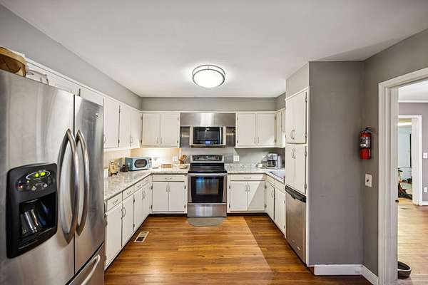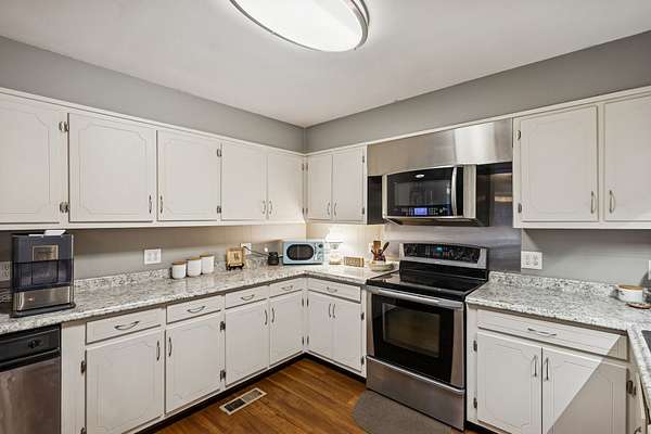 - Dishwasher, Electric Oven, Electric Range, Microwave, Refrigerator, Stainless Steel Appliance(s)