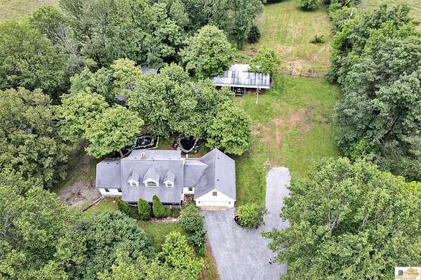 Tucked away at the end of a long gravel driveway, this well-maintained 3-bedroom, 3.5 bathroom home offers unparalleled privacy and tranquility on over 5 secluded acres. With no neighbors in sight, it's your own hidden haven where peace and nature abound. Step inside to discover a home filled with warmth and character. The main level features a spacious master suite complete with its own fireplace, a cozy living area with a second fireplace, a well-appointed kitchen, laundry room, and a dining room perfect for gatherings. Upstairs, two additional bedrooms and a full bathroom provide ample space for family or guests. Above the attached two-car garage, there's 2 bonus rooms, ideal for a home office or guest suite- there's no HVAC in the area above the garage. The walkout basement includes a full bathroom, a large storm shelter for added safety, a one-car garage, and a wood-burning stove connected to the home's ductwork and thermostat, ensuring efficient, cozy warmth throughout the colder months. While the home has been lovingly maintained by its original owner, it offers a unique opportunity for you to add your personal touch and transform this beautiful residence into your dream country retreat. Outside, the property features mature trees, two water gardens, two outbuildings, and a five-stall horse barn. The land is partially fenced and mostly cleared with some wooded areas and quality timber, making it ideal for animals, gardening, or simply enjoying nature. Located just minutes from the drive-in theater, Green River Paddle Trail, Campbellsville University, and Green River Lake, this home offers both tranquility and convenience. You're only 30 minutes away from Green River Lake State Park, where you'll find over 28 miles of multi-use trails perfect for horseback riding, hiking, and biking, all surrounding the beautiful Green River Lake. Experience the serenity of country living and make this hidden gem your own. Property has a recent survey.