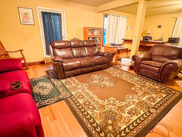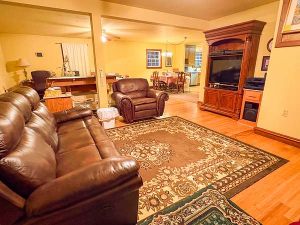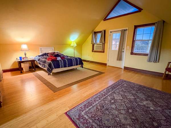 The 3 bed, 3 bath home was built in 2015 and totals 3,100 square feet with 1,200 sq. ft. on the main floor, a 700 sq. ft. loft, and a partially finished 1,200 sq. ft. basement with a garage. Inside, you'll find bamboo floors with black walnut trim, oak cabinets, and an open floor plan with plenty of natural light. The upstairs bedroom offers an incredible walkout balcony with a gorgeous view of the farm and river. The home has its own private water well, a wood burning heating system, and a septic for wastewater.