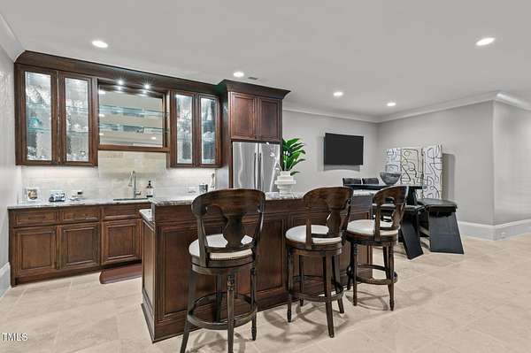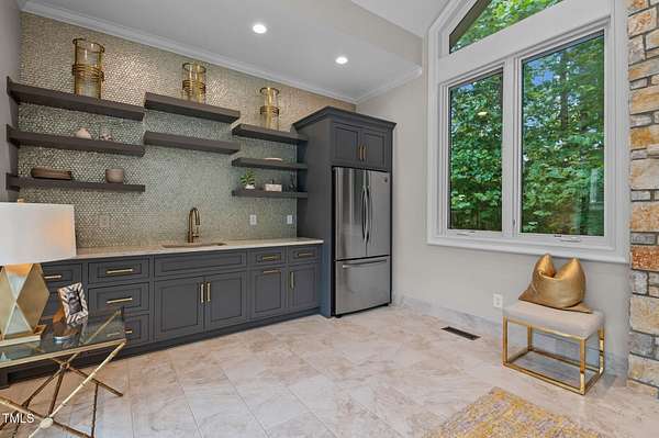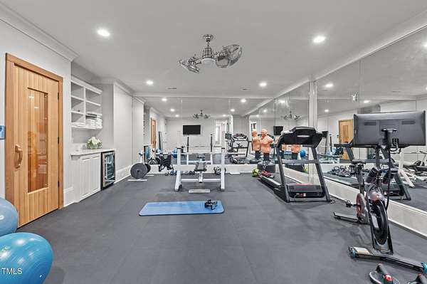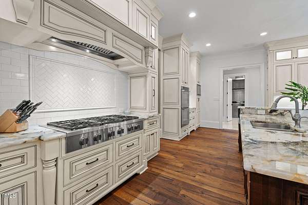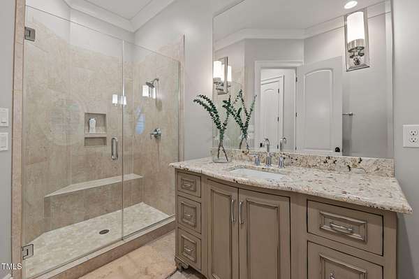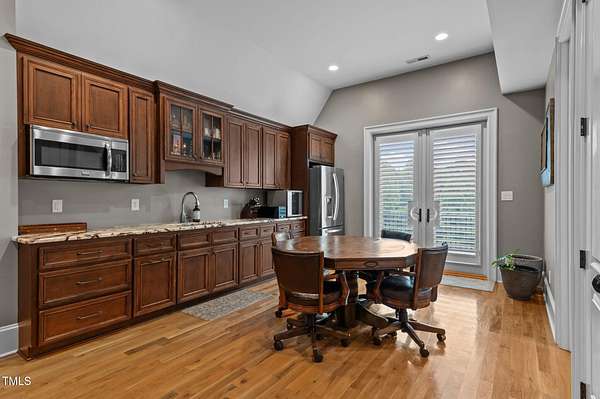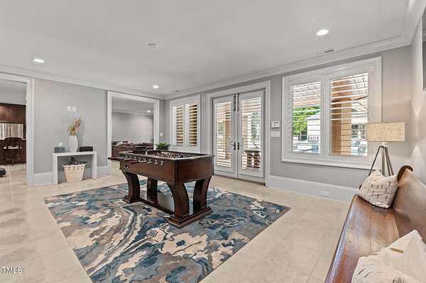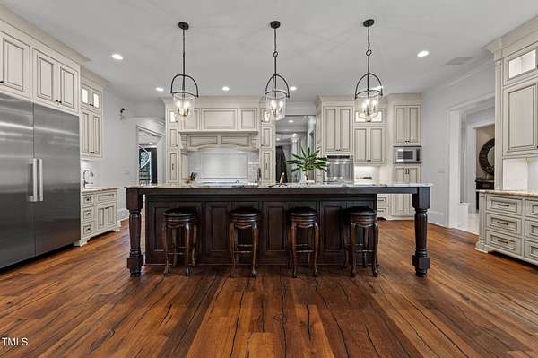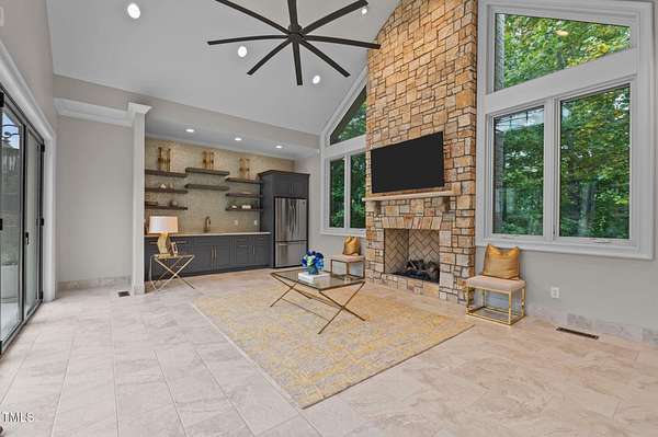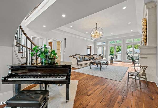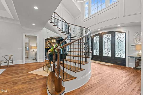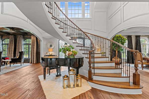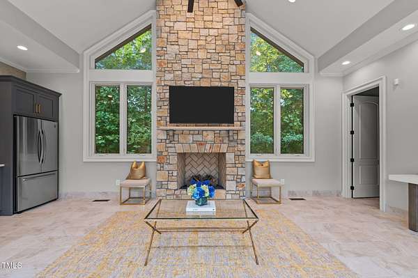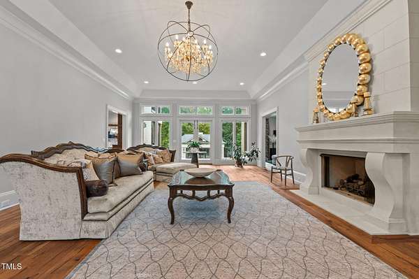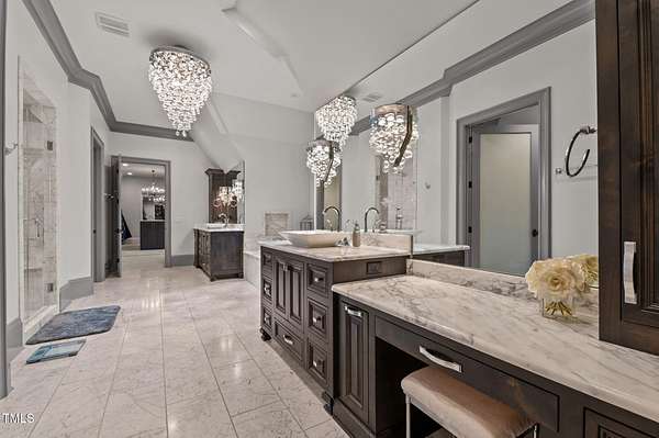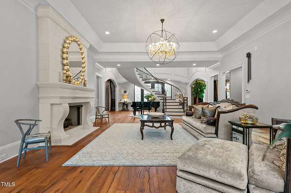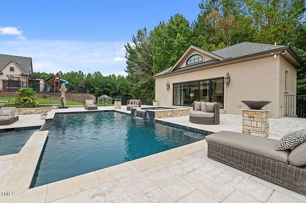 Unparalleled luxury, privacy, and function converge on this extraordinary 14.22-acre estate just north of Falls Lake. Fully fenced and gated for total seclusion, yet minutes from RTP, RDU, top universities, and fine dining. Extensively renovated with high-end finishes and designer details, this home blends modern elegance with timeless design-featuring a grand floating spiral staircase, 11 garages, and state-of-the-art systems including, generator, and reverse osmosis water filtration. The gourmet kitchen impresses with custom cabinetry, an oversized island, and adjoining hearth room, opening to a four-season porch with fireplace-perfect for year-round entertaining. The lavish primary suite offers a private sitting room with fireplace, four-season balcony, home office, laundry, and incredibly expansive his-and-hers private boutique dressing room that showcases custom cabinetry lining the walls, open shelving, soft-close drawers, dedicated hanging spaces and a large island with marble countertops. Elegant designer lighting, including recessed fixtures and statement chandeliers, highlights every detail and adds a warm inviting glow. The sitting area creates a comfortable space to relax or plan outfits. A private entry guest/in-law/Au Pair suite is accessible from the interior and exterior of the home. In the basement, enjoy a full home theater, gaming area, gym with sauna, salon, kitchenette, and bedroom with private bath. Outdoor living is next level: a heated, multi-tier saltwater pool with limestone deck, elevated spa, and waterfalls; a pool house with fireplace and kitchenette; a full basketball court; greenhouse; outdoor kitchen with built-in grill and cooler; temperature-controlled 6-bay kennel with wash station; playground; uplighting; and even a helicopter landing area. Opportunities like this are rare-schedule your private tour today to experience the lifestyle this extraordinary property offers.