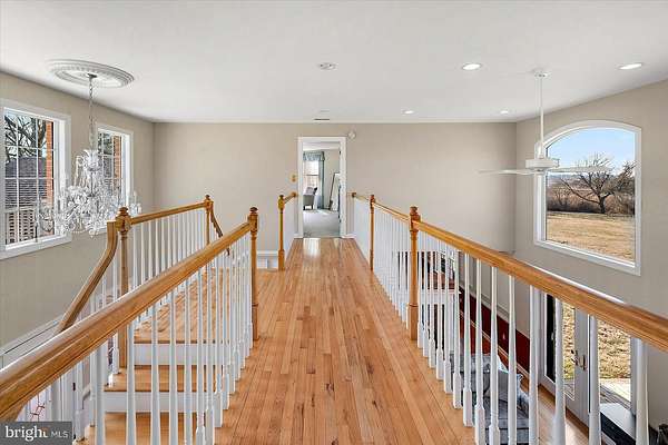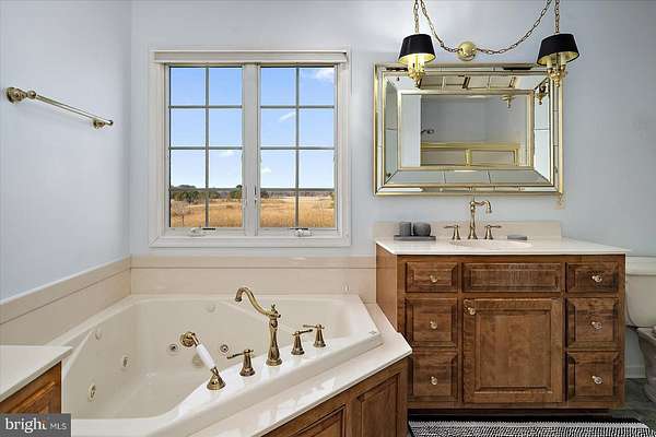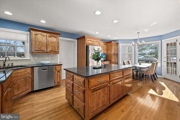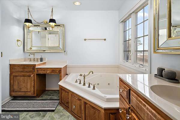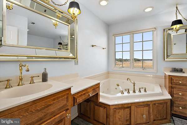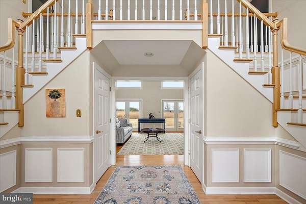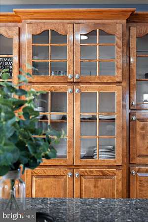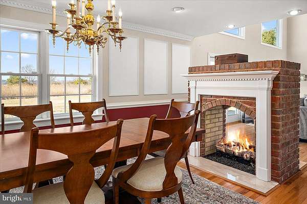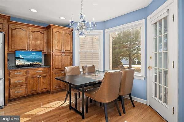 Experience timeless elegance and exceptional design in this one-of-a-kind 3,104 sq ft residence, where every detail was thoughtfully crafted to impress. As you arrive, a circular driveway with a charming pineapple fountain sets the tone, framed by mature trees, a welcoming front porch, and elegant landscape lighting that creates unforgettable curb appeal. Enter through double glass doors into a dramatic foyer featuring dual grand staircases, classic wainscoting, and a dazzling crystal chandelier with bell-shaped crystals. A motorized lift provides effortless maintenance for this striking centerpiece. The family room showcases a soaring vaulted ceiling, a see-through brick fireplace, and two-story arched windows that fill the space with natural light and offer breathtaking sunset views. Hardwood floors flow into the formal dining room and into the beautifully appointed kitchen, designed for both style and function. Custom hand-built birch cabinetry, blue opal granite countertops, a large center island, soft-close cabinetry, and stainless steel appliances-including a new refrigerator, microwave, and wall oven-create a chef-worthy space. Enjoy casual meals in the breakfast nook with serene views of the backyard and Monie Creek. The main level offers exceptional flexibility with a private in-law suite featuring its own attached garage, living room, kitchenette, bedroom, and full bath-perfect for extended family or guests. An additional bedroom (currently used as an office) and a half bath complete the first floor. Upstairs, an interior balcony overlooks the family room, leading to two spacious primary suites, each with a walk-in closet and full ensuite bath. One suite includes a peaceful sitting area and a spa-inspired bath with a whirlpool tub (heated by a Rinnai tankless water heater) and dual vanities. Storage is plentiful with three attic spaces, including a walk-up, fully floored third level ready for future finishing. Outdoor living is just as impressive-relax on the screened side porch or back deck, ideal for morning coffee or summer crab feasts. Boating enthusiasts will love the private, gated neighborhood boat ramp with direct access to Monie Creek for fishing, crabbing, and boating. A truly distinctive home in an exceptional waterfront community-schedule your private showing today!