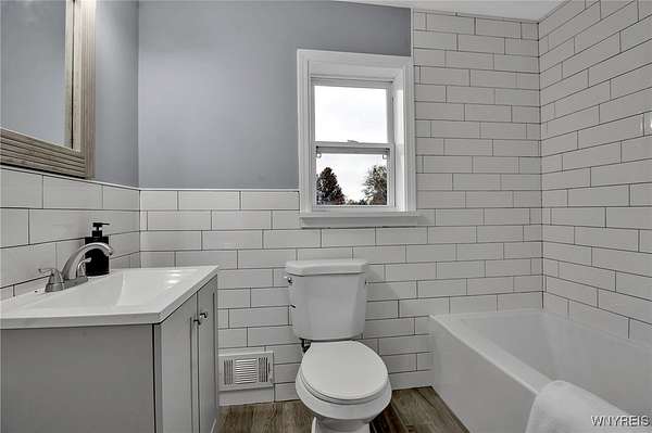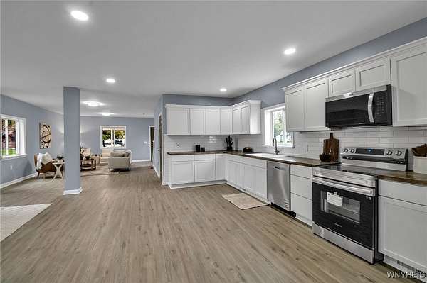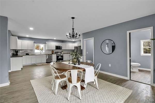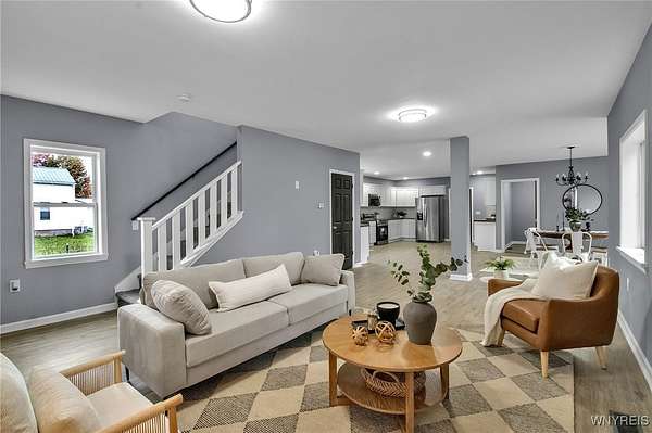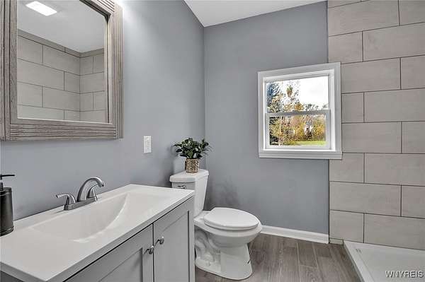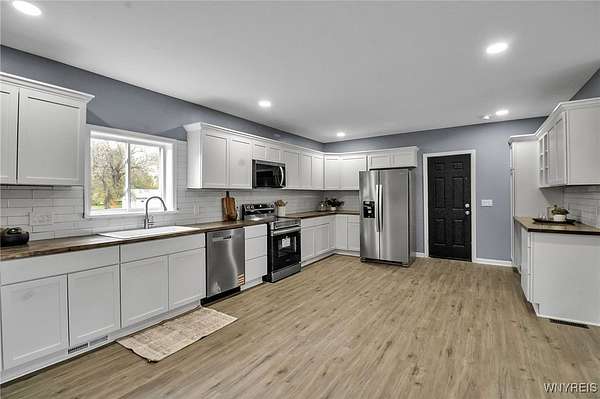 Discover the charm of rural living in this fully remodeled 4-bedroom, 3-full-bathroom home, nestled on 2.1 acres along the historic Erie Canal. Offering a perfect blend of modern upgrades and serene countryside appeal, this property is an ideal retreat for those seeking space, privacy, and convenience. Step inside to an inviting open-concept first floor, where natural light floods the space through brand-new vinyl windows. The expansive kitchen is a chef's dream, featuring all-new cabinets, sleek countertops, and abundant storage to accommodate all your culinary needs. Adjacent, you'll find a full bathroom for added convenience, a spacious laundry room, and an enclosed front porch-perfect for enjoying morning coffee or evening sunsets. Upstairs, the primary bedroom serves as a private oasis with its own en suite bathroom, providing a luxurious escape. Three additional bedrooms offer ample room for family or guests, supported by another full bathroom. Throughout the home, thoughtful remodeling ensures comfort and style at every turn. Outside, the property has new vinyl siding, a new roof for worry-free maintenance, and a 1.5-car garage for vehicles and storage. The large 2.1-acre lot invites outdoor activities, gardening, or simply soaking in the peaceful views of the historic Erie Canal. Additional updates: All new plumbing, electrical (including panel box), insulation, septic tank & distribution box. This turnkey home combines the tranquility of rural life with contemporary amenities. The square footage in the tax records is not current. The owner added onto the back of the house on the 2nd floor.