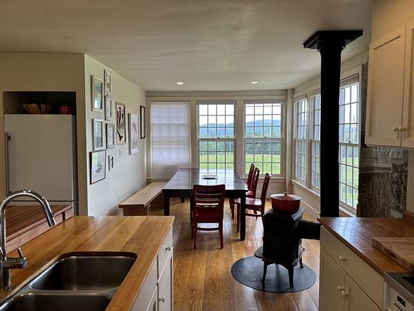 Pawlet Perfection! High on a quiet country road, surrounded by open meadows, is that rare combination of peaceful country retreat and grand historic home. This enchanting compound sits on 32 +- acres with protected majestic mountain views and includes a classic 1817 Federal farmhouse, a dramatic two story barn, original blacksmith shop, milk house, open tractor shed, and other functional outbuildings (ripe for cottage conversion). Sensitively restored and updated for modern living, the residence offers crisp spacious rooms with high ceilings and beautiful historic details like original wrought iron hardware and wide plank flooring. The gracious floor plan includes a wide center stair hall surrounded by an elegant living room, a library with floor-to-ceiling built-in bookshelves on every wall, with a passthrough into the formal dining room, and first floor bedroom/study with an adjacent full bath. All of these rooms boast expansive closets and wood-burning fireplaces with original marble hearths. A mid 19th century addition houses the modern kitchen with new Italian appliances, multiple pantries, and a large breakfast area wrapped in a wall of windows facing the exquisite westerly sunset vistas. Upstairs, four large BRs with two window exposures and generous closets plus a bath w/ walk-in shower round out this comfortable home. The attic is finished providing functional art/work space and storage. High-speed fiber and updated mechanicals, including radiant heat throughout the entire first floor. A Peaceful Four Season Paradise minutes to Pawlet Village, nearby Dorset & Manchester amenities, plus hiking, skiing, rail trail, equestrian pursuits, lake and river recreation, farmers markets, music, art & theater! The parcel has a second building area with a state waste water permit for a 5 bedroom home with buried electric and junction box on site to create a fantastic family, friends or corporate compound!