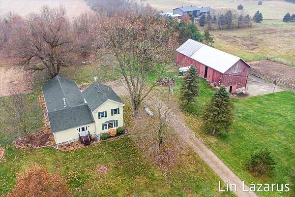 Experience the perfect blend of country charm and modern comfort on this stunning 10-acre farmhouse estate. This welcoming 3-bed, 2-bath home was completely rebuilt down to the studs in 1978 and thoughtfully updated again in 2025 with a new roof, fresh interior paint, new hardwood flooring and carpet, brand-new patio and the list goes on. Recent blown-in insulation further enhances comfort and energy efficiency throughout. The property offers an exceptional landscape designed for those who value space, privacy, and natural beauty. The grounds include a mix of forest, hay fields, pastures, and established trails, ideal for horseback riding, hobby farming, or peaceful outdoor exploration. Mature trees adorn the acreage, featuring Honeycrisp and assorted apple varieties, Sugar Maple, Walnut, Butternut, Red Maple, and Red and White Pine. In the warmer months, vibrant 200 lillies and a diverse array of seasonal flowers create a picturesque, ever-changing backdrop. Equestrians and agricultural enthusiasts will be especially drawn to the large, beautifully updated barn, offering exceptional versatility. Whether you're caring for horses, raising cattle, storing equipment, or expanding a hobby farm, this impressive structure is ready to support your vision. Combining thoughtful home updates, beautiful natural surroundings, and versatile agricultural features, this property offers an unparalleled rural lifestyle. For added convenience and enjoyment, a 2-stall heated garage provides a comfortable space to work year-round, making it perfect for chilly season projects or simply keeping your vehicles warm and ready to go. A remarkable opportunity, schedule your showing to experience the serenity and potential of this exceptional country estate. Updated photos are coming tomorrow.