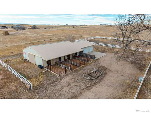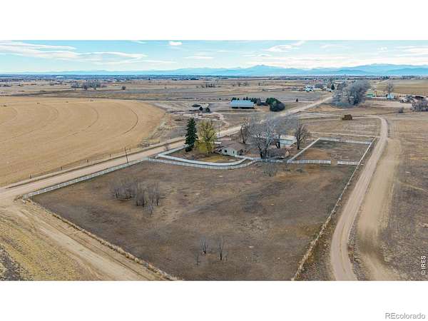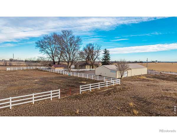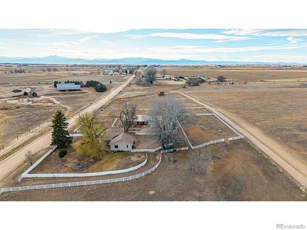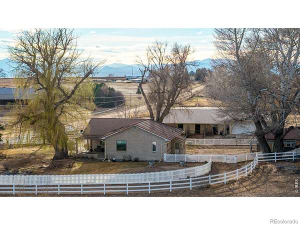 Enjoy peaceful country living on 4.09 acres with mountain views just outside Eaton. This Northern Colorado horse property offers fenced, usable acreage with a large riding area, barn with four stalls and Nelson automatic waterers, shop space, and a large three-car garage. Home was originally built in 1899 and reportedly rebuilt in 1994, the home blends historic charm with modern comfort and offers approximately 2,584 sq ft. Inside you'll find a spacious living room with soaring ceilings, west-facing windows capturing mountain views, and a cozy fireplace. The primary suite offers patio access, and a finished basement family room adds additional living space. This Northern Colorado acreage property is truly a rare find. Schedule your showing today!