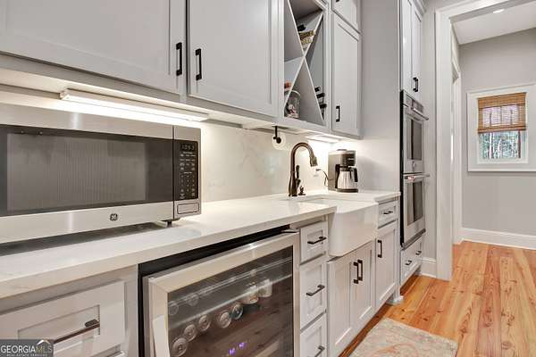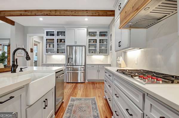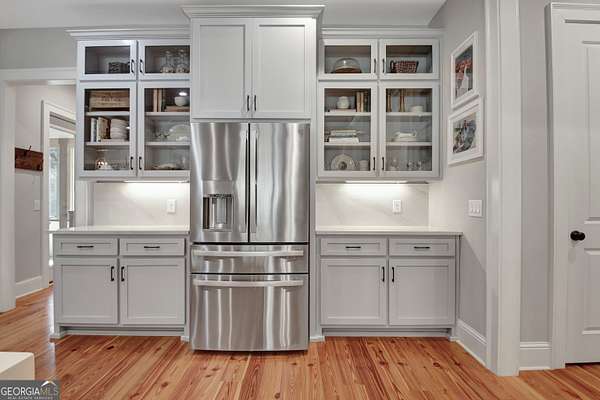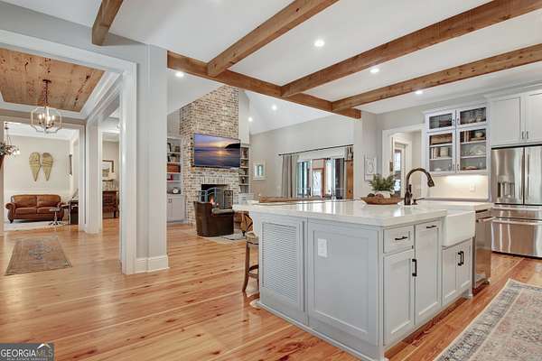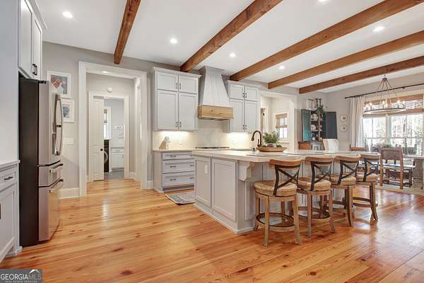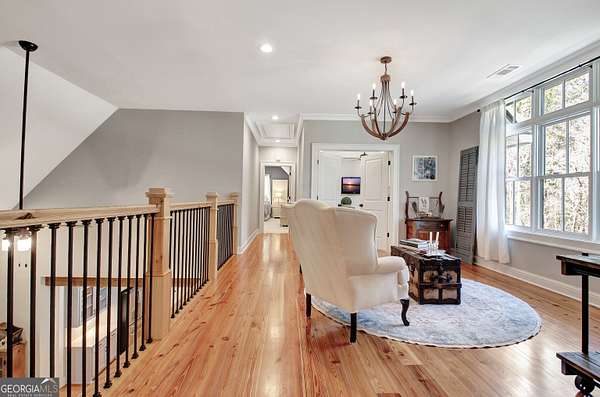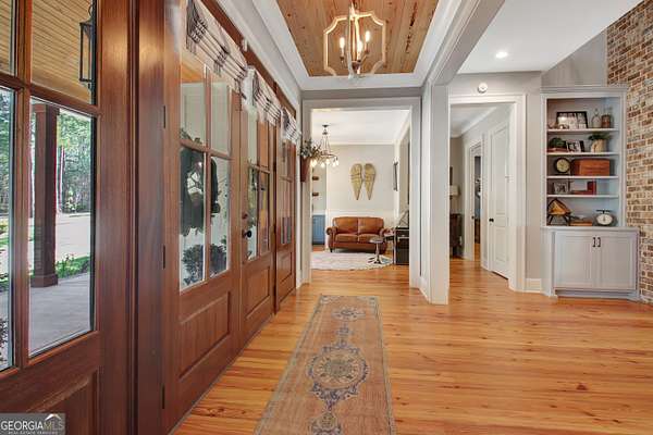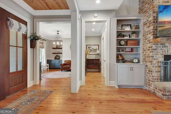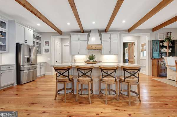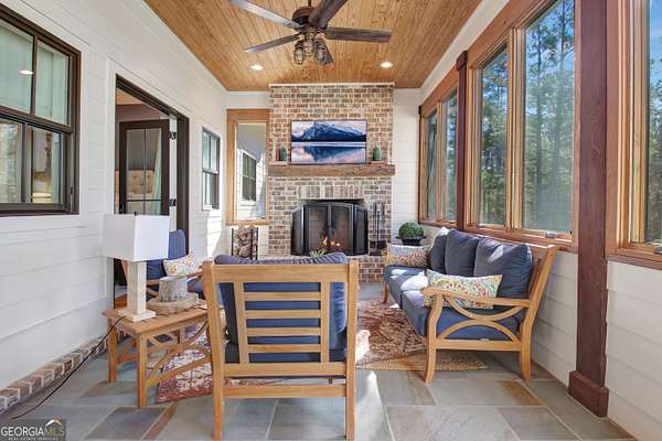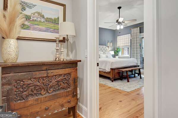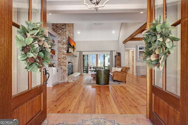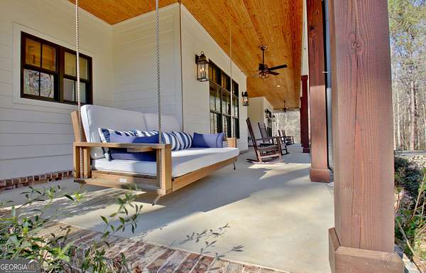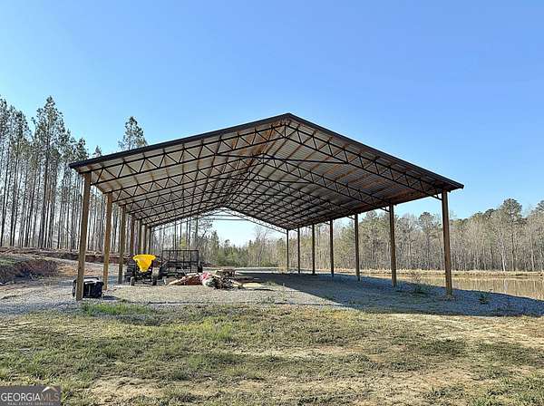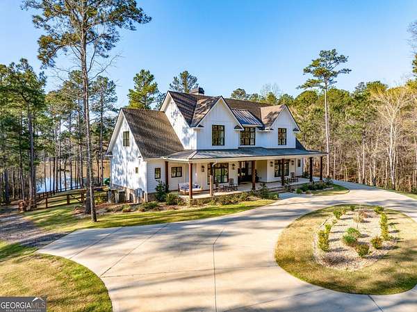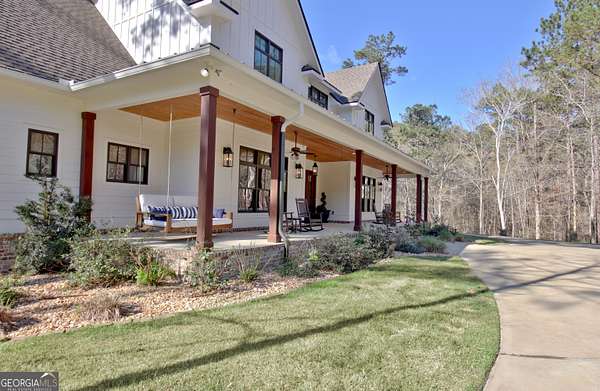 Welcome to this stunning Southern Farmhouse Revival situated on 28+/- acres with a 3.5-acre stocked pond at 1268 GA Hwy 208 in Hamilton, Harris County, Georgia. Completed in 2021, this custom-built residence offers approximately 4,350 square feet with 4 bedrooms and 3.5 baths, just minutes from downtown Hamilton and less than 30 minutes to downtown Columbus. No detail was overlooked and no expense was spared in the construction of this exceptional home. A gated entrance opens to a serene, meandering, tree-lined drive with irrigation, leading past a fenced chicken and garden area to the main residence with a circular drive. This modern farmhouse blends timeless sophistication with contemporary luxury, showcasing a striking white board-and-batten exterior, architectural shingles, and an inviting rocking chair front porch that delivers exceptional curb appeal. Inside, double doors welcome you into a light-filled parlor, complemented by cedar beams, pecky cypress tongue-and-groove ceilings, reclaimed heart pine hardwood floors, 8-foot interior doors, and extensive custom millwork throughout the open-concept layout. The gourmet kitchen is thoughtfully appointed with solid surface countertops, ample cabinetry, an oversized breakfast bar, custom built-ins, stainless steel appliances, a gas chef's range with hood, farmhouse sink, and walk-in pantry. A large butler's pantry just behind the kitchen includes double ovens, a beverage refrigerator, second farmhouse sink, and microwave. The hallway leads to a spacious mudroom with abundant storage and a laundry area. The hearth room features a 20-foot vaulted ceiling and a wood-burning fireplace as its focal point, seamlessly flowing into an oversized, climate-controlled enclosed porch with a second wood-burning fireplace and access to the 10' x 24' outdoor deck-ideal for game day cookouts. The main level also includes a private home office and a conveniently located half bath. The primary suite on the main floor offers a spacious retreat with an oversized walk-in closet featuring custom built-ins, along with a spa-inspired bath complete with a soaking tub and a separate porcelain tile walk-in shower with dual shower heads. Upstairs includes three additional bedrooms, a sitting area with pine floors, and flexible space. One bedroom features a private bath, while the other two share a Jack-and-Jill bath. Outdoors, enjoy peaceful mornings or evening walks around the private 3.5-acre stocked pond with dock, or take advantage of the massive 40'x72' pole barn. The expansive fenced rear yard provides ample space for recreation or pets. Additional features include an oversized two-car garage with a freestanding tornado shelter, poured foundation with a sealed and conditioned crawl space, 2x6 exterior wall construction with spray foam insulation, whole-house dehumidification system, high-efficiency Trane HVAC systems (16 SEER), instant propane gas water heater, Sierra Pacific aluminum-clad windows, and high-end stonework on the rear enclosed porch. The property also includes a second, older home with 2 bedrooms and 1 bath, along with a barn. This residence is subject to a life estate. Conveniently located near top-rated schools, shopping, dining, and major highways, this property offers an ideal balance of privacy and accessibility. Whether seeking a primary residence or a refined country retreat, this exceptional property delivers a rare combination of land, luxury, amenities and lifestyle. No restrictions or HOA. Residence located outside of the city limits. ADDITIONAL ACREAGE AVAILABLE UP TO 116+/-***