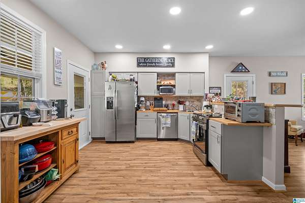 Lake life on a level lot on Lake Wedowee! Nestled on nearly 5 level acres, this 4BR/2BA home offers space, privacy, and versatility. Each level features its own private entrance plus a full living space—including a living room, kitchen, laundry, bedrooms, and bath—making it ideal for short-term rental, multi-generational living, or hosting guests with ease. Step outside and the magic continues… a large wraparound porch, screened-in porch, cozy outdoor fireplace, and multiple seating areas set the stage for unforgettable evenings. Enjoy your brand-new dock with boat lift and a private gravel boat ramp for easy lake access. Whether you’re looking for a full-time retreat, weekend escape, or investment opportunity—this one checks all the boxes.