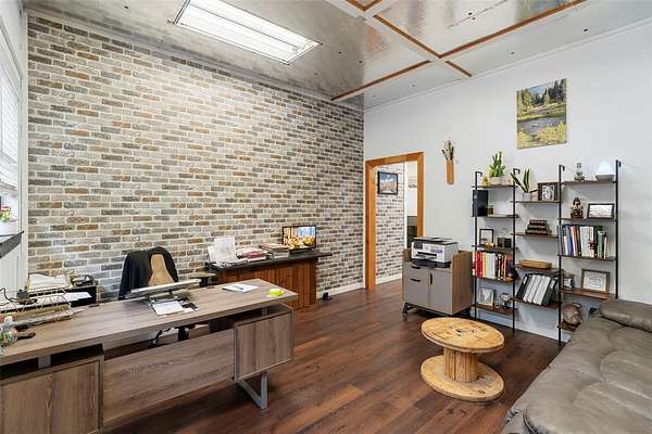 A dedicated office space allows you to work from home with ease, providing privacy and space. The outbuilding provides garage storage for your vehicles, equipment or additional storage with covered parking for your toys. Just beyond the outbuildings grab fresh eggs from your chickens, this property is designated Agricultural and features homesteading benefits.