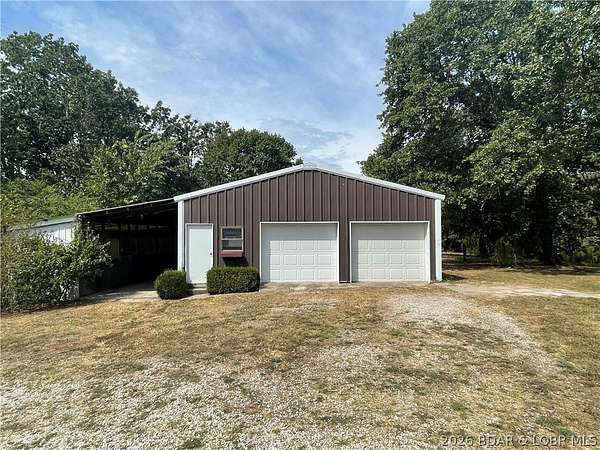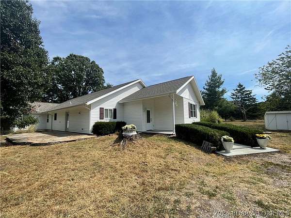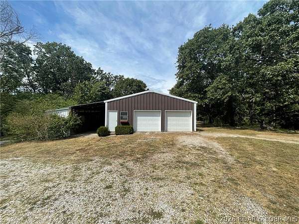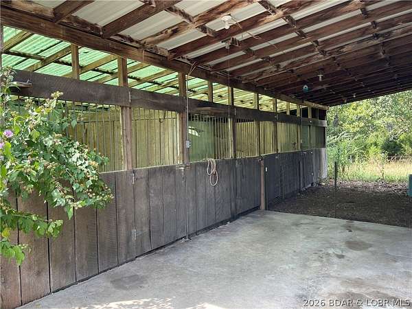 Sprawling family home on just over 20 acres, perfectly situated between Camdenton and Osage Beach. With 5 beds, 2 baths, with a bonus room perfect for an office. Flexible layout, this property is designed for both comfort and function. The primary suite offers a spacious bath, walk-in closet, and plumbing for a wet bar or coffee station-ideal for a private retreat. The home features a large kitchen and dining area, multiple living spaces, and thoughtful updates, including a newer roof (2022), New concrete septic tank and leech field, and an inline UV water filtration system with a 3-stage whole-home reverse osmosis. The land is level and partially cleared, making it easy to maintain yet expansive enough for freedom and outdoor enjoyment. Perfect for a hobby farm, the property includes a large 2-car garage with workshop space, room for tractor equipment, and horse stalls directly attached. Tractor and brush hog are included, so it's ready to go from day one. Whether you're dreaming of raising horses, starting a small farm, or simply enjoying country living with quick access to Lake of the Ozarks amenities.