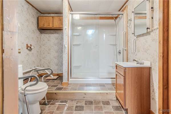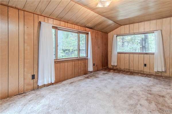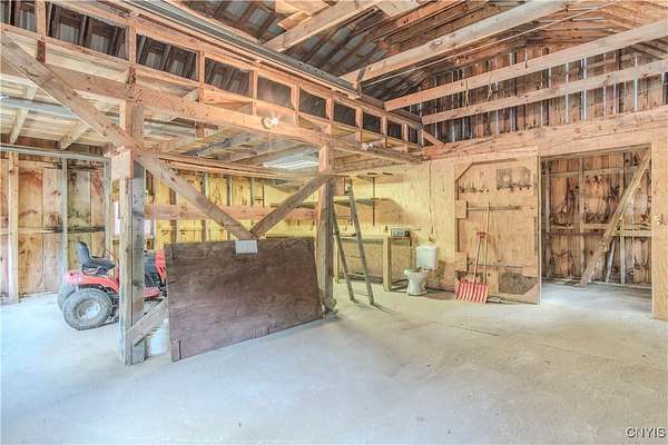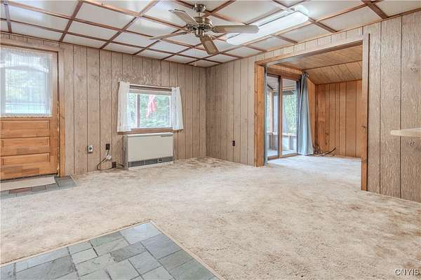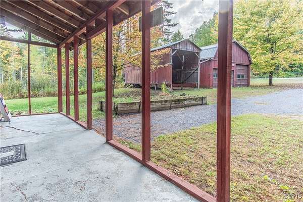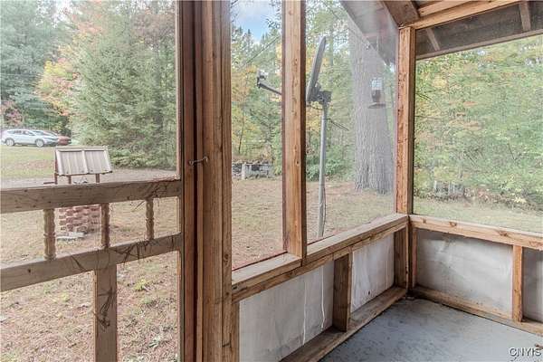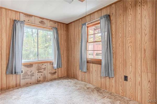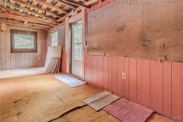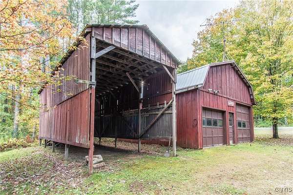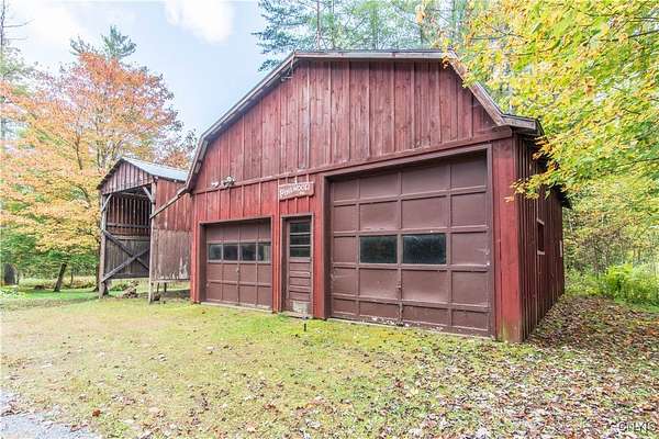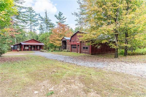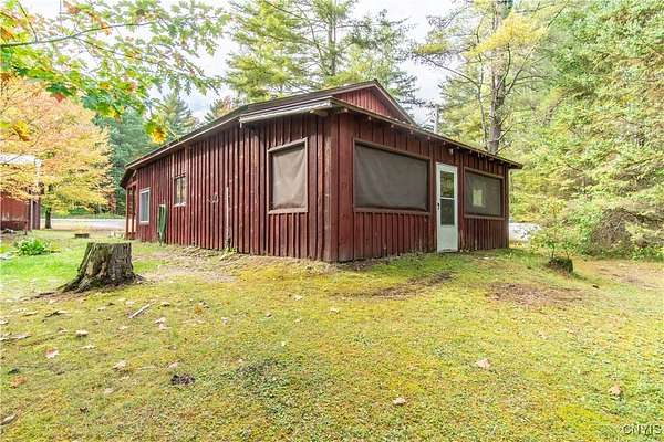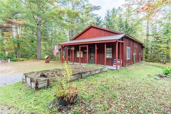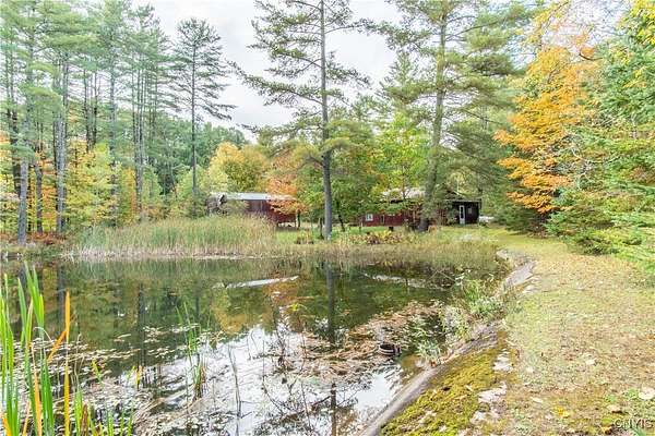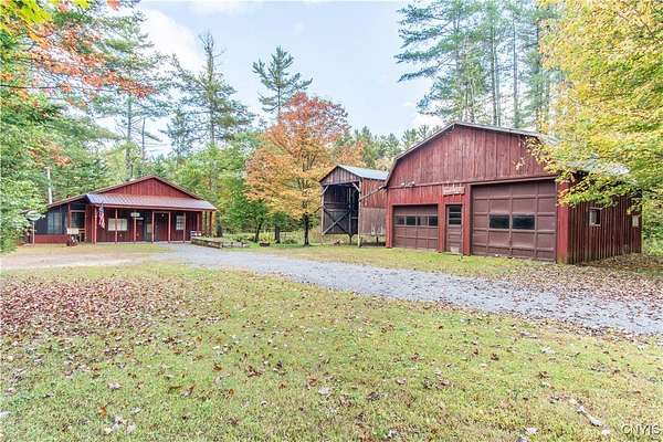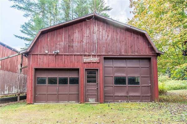 Situated on nearly 5 acres with a private pond, this charming one bedroom, one bath home offers the perfect blend of comfort and space. A welcoming open porch leads you inside to a spacious layout featuring a large kitchen, designated living room, dining area, full bath, and bedroom. Enjoy the added convenience of a bonus room, enclosed back porch, and a cozy screened in porch ideal for relaxing. Outside, the oversized two-stall garage provides plenty of storage, including an upstairs loft and dedicated shop space. A separate boat shed, large enough to house a party barge, adds even more value for outdoor enthusiasts. Surrounded by state land and just minutes from Lake Bonaparte, this property is a great find for anyone seeking privacy, recreation, and year-round enjoyment.