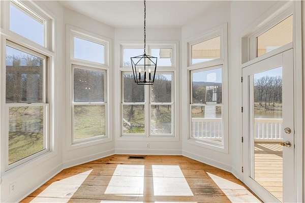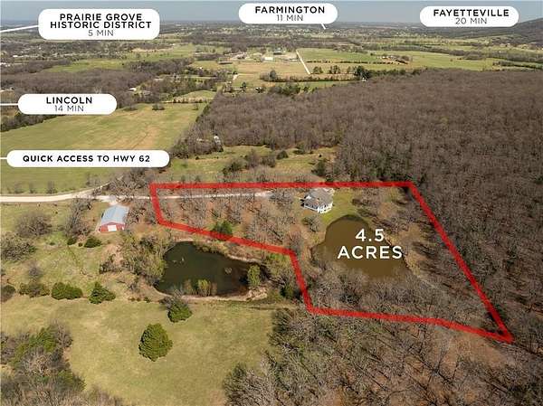 Welcome Home! This charming 6 bed, 5.5 bath New England style home is set on 4.45-acres tucked away in the Prairie Grove hillside. This estate features a beautiful stocked bass pond that serves as the centerpiece of your private oasis. Newly updated in March 2026, boasting new paint, new carpet, updated countertops, contemporary hardware, new light fixtures & a newly poured concrete slab. Inside, the character of this home is one-of-a-kind with original wide cedar plank flooring that pairs beautifully with the wood fireplace in the living room. The abundance of large windows fill every room with natural light & provide views of the rolling landscape. Downstairs enjoy the wood-burning stove in the additional living room. The home is equipped with a geothermal heating system. Retreat to the two-story back porch to enjoy your view of the water & surrounding landscape. This property offers a rare opportunity to enjoy a classic, updated home with the serenity of a private fishing pond just steps from your back door.