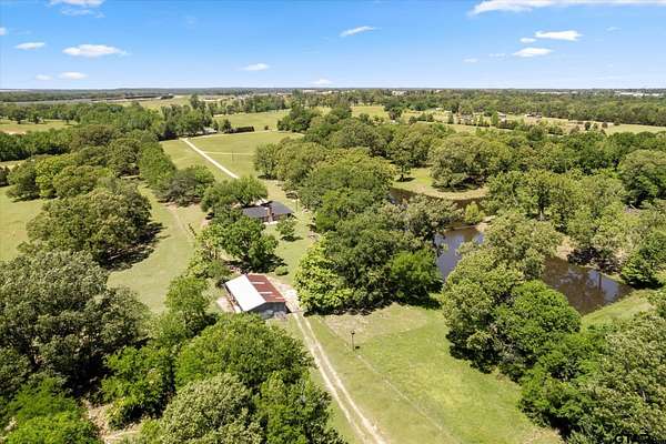 Well maintained home on 136 Acres -- Close to Town Spacious 3-bedroom, 2.5-bath home set on 136 rolling acres. The home features a vaulted ceiling in the den, an oversized kitchen with a large island, and abundant cabinet space. Additional features include a 2-car garage and a utility room with an extra shower and bathroom. Enjoy peaceful views from the back patio overlooking a beautiful 2+ acre pond that has potential to be larger. The property includes scattered mature hardwoods, good grazing pastures, and excellent hunting opportunities for hogs, deer, and ducks. Nice size barn provides storage, and a walkway over the pond offers a great spot for fishing. Located just minutes from town, this property offers the perfect blend of rural living and city convenience.