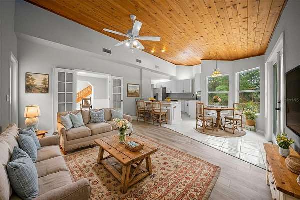 One or more photo(s) has been virtually staged. Back on the market and even better than before! Discover the best of both worlds in this beautifully updated one-owner home nestled on 5.42 acres zoned A1, perfect for animal lovers, hobby farmers, or anyone craving wide open space and privacy. Set at the end of a quiet drive, this 3-bedroom, 2-bath retreat is a hidden gem designed for those who love the land but don't want to sacrifice style or modern updates. Step inside to a light-filled layout where fresh neutral tones, custom picture windows, and quality updated finishes bring warmth and calm to every corner. The fully remodeled kitchen is the heart of the home, featuring granite countertops, new stainless steel appliances, and countertop bar seating. The spacious family room connects seamlessly to the formal dining room through French doors, making it ideal for special gatherings. The formal living room's floor-to-ceiling brick fireplace adds rustic charm and comfort, while two updated guest bedrooms and a modern full bath offer space for visitors or family. Upstairs, the private primary suite is a private retreat with a brand new spa-like bathroom boasting dual vanities, a soaking tub, and a glass-enclosed dual shower. An office loft and private screened-in deck overlooking the woods make it easy to unwind and work remotely. A portion of the front acreage is fenced, and there is a newly built 30x30 detached garage with electric that provides ample space for equipment, projects, or storage. Additional improvements include a 2014 solar-enhanced water heater, a 2025 water softener system, an annual termite bond, and a 2019 HVAC system. The durable metal roof, installed in 2014, ensures long-lasting protection and peace of mind. One-of-a-kind features like the handcrafted oak and ash staircase showcase the care and craftsmanship that make this home truly special. With agricultural zoning, this property offers endless possibilities for farming, livestock, or simply enjoying wide-open country living. The acreage extends all the way to Hwy 315, providing both convenience and opportunity for future use. Located just 15 minutes from Ocala and convenient to both I-75 and I-95, it's an ideal home base for travelers, commuters, and equestrian lovers alike, especially with the World Equestrian Center close by. Survey and other supporting documents available, no HOA.