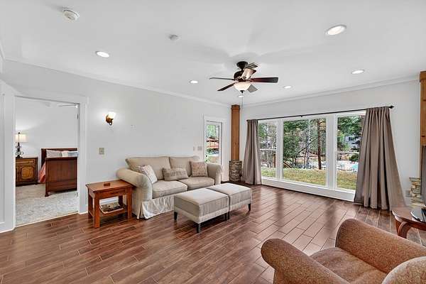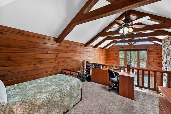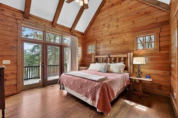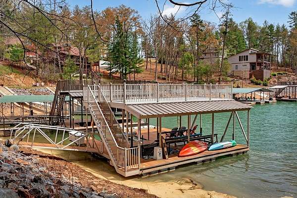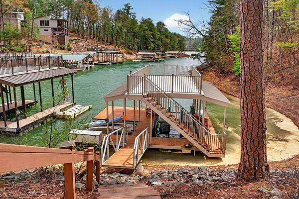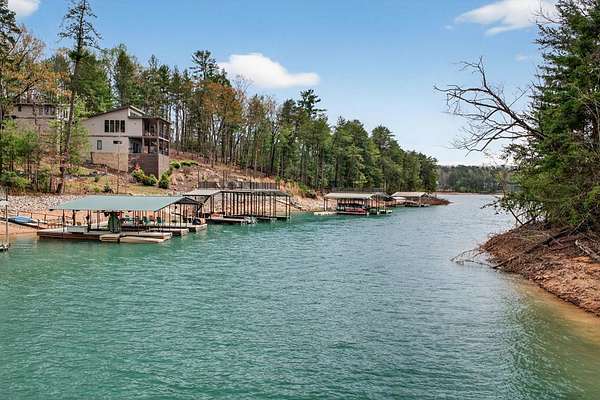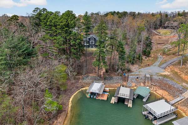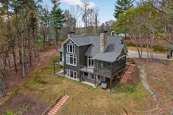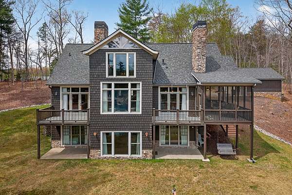 Est $11,415/moRARE CRAFTSMAN AT THE PRESTIGIOUS AZURE POINT ON 2.32 ACRES ON LAKE BLUE RIDGE! Seldom do you find a private, wooded estate of this size just minutes from downtown Blue Ridge via all-paved roads! This splendid 4BD/3.5BA custom home offers the ultimate combination of waterfront privacy and town convenience. Inside, enjoy soaring cathedral ceilings, stunning stone accents, two fireplaces, open dining, and a game room. Step outside to a massive screened porch with a striking outdoor fireplace, perfect for taking in beautiful lake views. Complete with a private double-decker boat dock and jet ski port. A truly rare find in a highly pursued lake location!