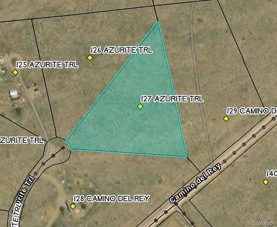 From County Road T., turn right onto Camino Baca Grande, take a right onto Camino Real, left on Wagon Wheel and left again on Camino del Rey. Azurite is the next right, go a short distance to the end of the cul-de-sac.