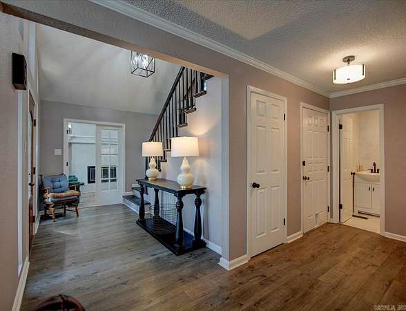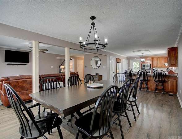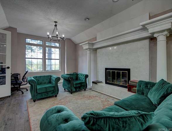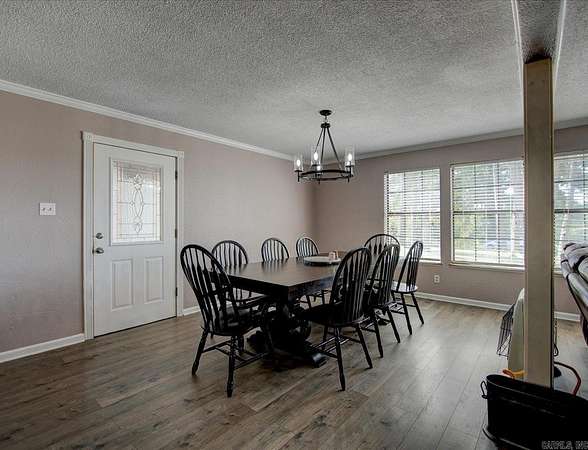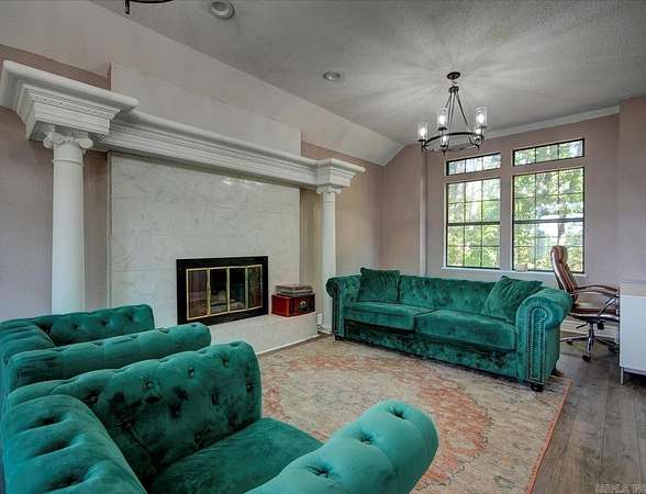 Charming Tudor-Style Home with Pool, Pond & Barn on 4.52 Acres in Lake Hamilton School District! This enchanting Tudor-style residence offers a perfect blend of classic elegance & modern comfort, nestled on a sprawling 4.52 acres within the highly sought-after Lake Hamilton School District. Step inside to discover a beautifully appointed 3Bd/3Ba home that effortlessly combines timeless charm w/ contemporary convenience. The inviting foyer leads you into a spacious, sunlit formal living area w/ vaulted ceilings, intricate woodwork & an exquisite fireplace that serves as the centerpiece of the room. The kitchen is a chef's delight, featuring rich cabinetry & is open to the dining/family living areas. The home's 3 bedrooms are thoughtfully located on the upper level, providing a sense of privacy & separation from the main living areas. The master suite is a serene retreat, complete w/ a luxurious en-suite bath, featuring a custom tile shower. The additional bedrooms are well-sized & offer charming details. All this plus an in-ground pool, pond & barn make this the perfect home!