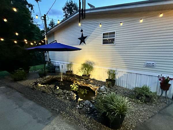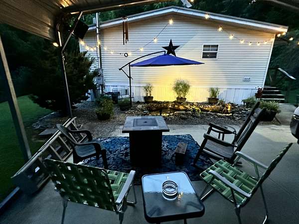 - Awning(s), Fire Pit, Lighting, RV Hookup, Rain Gutters