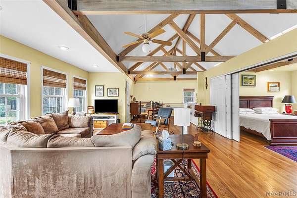 Beautiful Southern Living estate on 5.5 acres! Offering over 4,900 square feet, this one-of-a-kind property is truly an entertainer's dream. The main home features 3 spacious bedrooms, 2.5 baths, with the primary suite conveniently located on the main level. Inside you'll find a large family room, formal dining room, spacious kitchen, den, and half bath, while upstairs offers two additional bedrooms and a full bath. This exceptional property goes far beyond the ordinary with a guest apartment over the garage complete with a living room, kitchen, and bathroom-perfect for guests, extended family, or private accommodations. Car enthusiasts will love the impressive 6-car garage, including a 4-car heated and cooled garage with abundant storage and even a grease pit. Also located on the property is an additional inset home currently used as a study/library, adding even more versatility and charm. Outdoor living is just as impressive with a large front porch, side porch, and a massive screened porch stretching across the back of the home. This remarkable estate offers space, character, and endless possibilities in a beautiful private setting
