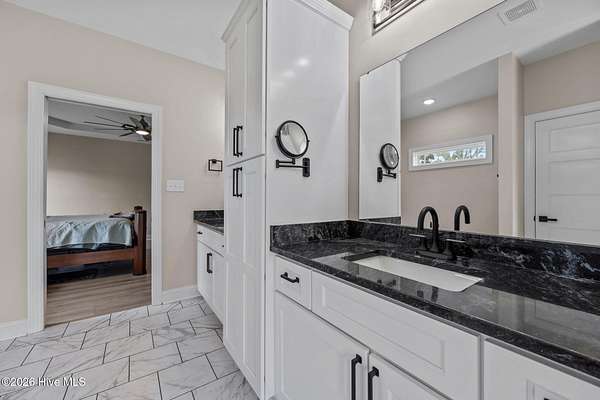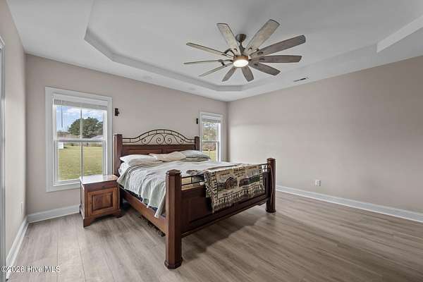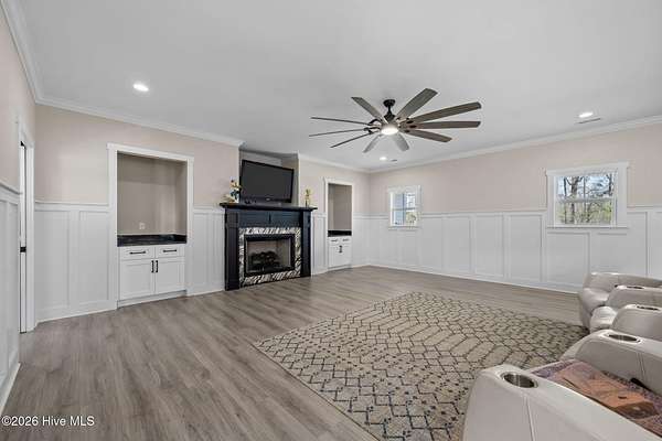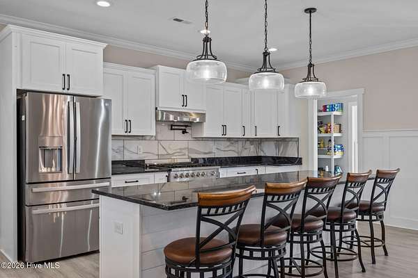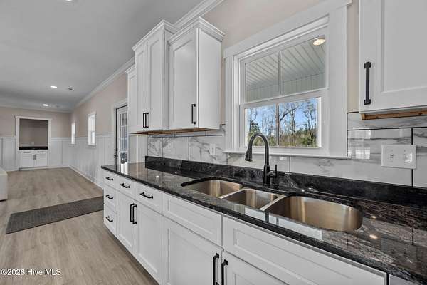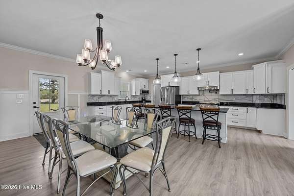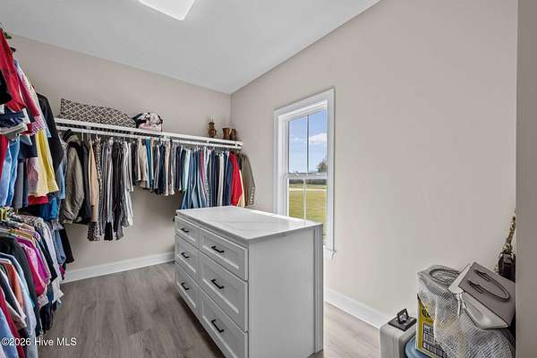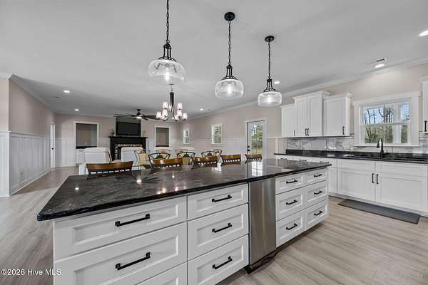 Custom farmhouse living at its finest on over 3 acres with no HOA and no city taxes. This beautifully designed one-story home offers 2,765 heated square feet, 3 bedrooms, 2.5 baths, and a split-bedroom layout that delivers both comfort and privacy. Inside, you'll find custom LVP flooring throughout, an open-concept design, and upscale finishes that give the home both warmth and style. The kitchen is built to impress with an oversized island, custom granite countertops, custom tile backsplash, a European gas range with pot filler, and a butler's pantry that makes entertaining and everyday life easy. Just off the oversized primary bedroom, the custom tile bath feels like a private spa with a freestanding jetted tub and a custom tile walk-in shower. Out back, the covered patio offers a perfect place to relax and enjoy the space and freedom that come with over 3 acres. Complete with a built-in storage area and 2-car garage, this home delivers the custom details buyers want with the peaceful setting they've been hoping to find. For information about our preferred lender and the incentives you may qualify for, please ask your agent to review the agent comments for additional details.
