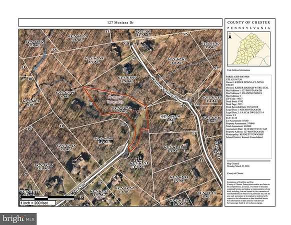 Welcome to 127 Montana Drive, a stunning residence nestled off the end of the cul-de-sac in Chadds Ford. Set on 1.9 Acres with beautiful landscaping, this exceptional 5-bedroom home offers 3 full and 2 half baths, a 3-car garage, spacious and elegant first floor primary bedroom suite and a fully updated gourmet custom kitchen. The home is thoughtfully designed to combine comfort, elegance, and everyday functionality.From the moment you arrive, you'll notice the attention to detail and quality appointments that today's homeowners desire. Spacious living areas, refined finishes, and a well-appointed layout make this home ideal for both relaxing and entertaining. Located in sought after Kennett Township, the home is perfectly positioned between the renowned Longwood Gardens and the historic Winterthur Museum and Gardens, this location offers not only scenic beauty but also convenient access to the area's finest attractions, dining, and amenities. Experience the best of Brandywine Valley living in a home that truly has it all.