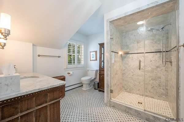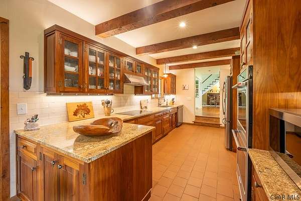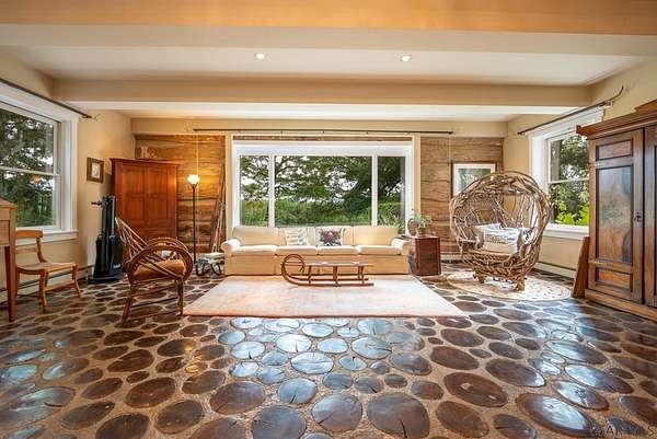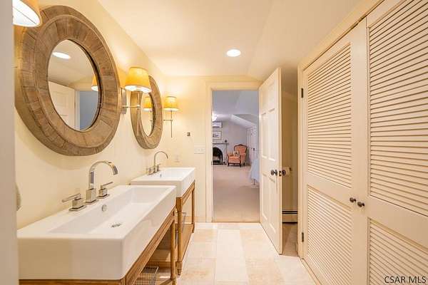 Tucked away on 23 private acres in Ligonier Twp, this mountain retreat blends natural beauty with timeless craftsmanship. The land is a living showcase of blooming redbuds, yellow dogwoods, towering bigleaf magnolias, and 4 blight-resistant American chestnut trees. This home captures sweeping views of the Laurel Highlands. Welcome into a spacious family room with fieldstone fireplace, wet bar & unique oak ring flooring. A formal dining room & sunroom with octagonal cupola. The kitchen offers oak cabinetry, granite counters, fireplace warmed dining nook & additional living area with a wall of windows. Upstairs includes a spacious primary suite, guest bedrooms, and an additional suite w/ a decor fireplace & rear staircase. Great Property!!