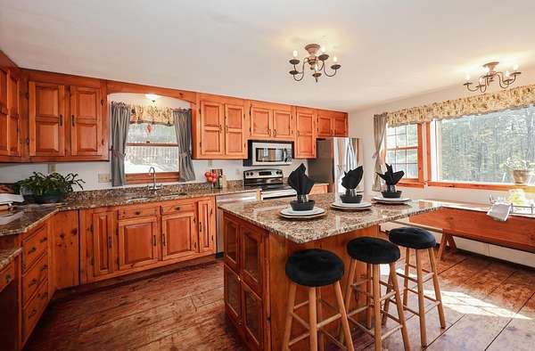 This one is for the adventurers AND the homebodies! Come discover this 3-bedroom, 1.5-bathroom home, offering 2,450 sq. ft. of living space--where your backyard oasis meets ultimate convenience. The home's close proximity to Route 101 keeps local shopping and dining ultra accessible. Host both a pool party and a horseshoes tournament at the same time on this generous 3.8 acre lot! . This property sits only 15 minutes from Peterborough, a regional hub for arts and culture. Inside, the spacious first floor offers incredible flexibility with a bedroom, half bath, office, living room, family room, and dining room in addition to an open and well-lit, eat-in kitchen. The kitchen is the epicenter of the home, featuring a massive island, expansive picture window, solid wood cabinetry, and updated stainless steel appliances. Outdoors, the fun and relaxation begin: enjoy the HEATED gunite pool (new in 2018), custom hardscaping, and sliding-door access to the wraparound deck. Bring the charming stone patio and tranquil koi pond back to life and cozy up around the fire pit. Take your off-road vehicles to nearby Miller State Park or explore the ON SITE TRAILS--from your very own backyard. Whether you're seeking a peaceful retreat or an active outdoor lifestyle, you'll find it here.