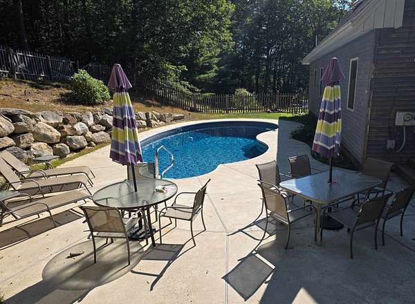 This property offers the best of both worlds—perfect for those who love the outdoors while enjoying the charm and convenience of classic New England living. Set on 3.8 private acres, this 3-bedroom, 1.5-bath home with 2,450 sq. ft. provides a rare blend of space, recreation, and accessibility. Enjoy year-round outdoor living with nearby trails and easy access to Miller State Park for hiking and scenic views, plus your own trails right from the property. Step into your own backyard oasis featuring a HEATED pool and massive wraparound deck (2018), perfect for entertaining or relaxing in a private, natural setting. The surrounding area is rich with classic New England charm—rolling landscapes, scenic roads, and a strong sense of community—while still offering everyday convenience. Despite its peaceful setting, you’re just minutes to Route 101, making commuting, shopping, and dining simple. Only 15 minutes to Peterborough, known for its vibrant arts scene, shops, and restaurants. The home itself offers exceptional flexibility, with a spacious first floor that includes a bedroom, half bath, office, living room, family room, and dining room, all centered around an open, light-filled eat-in kitchen. The kitchen features a large island, expansive picture window, solid wood cabinetry, and updated stainless steel appliances. Conveniently located just 90 minutes to Boston and 45 minutes to Manchester-Boston Regional Airport—this home delivers a lifestyle that is both peaceful and connected. Showings start at Open House Saturday, April 4, 2026 11-12:30.